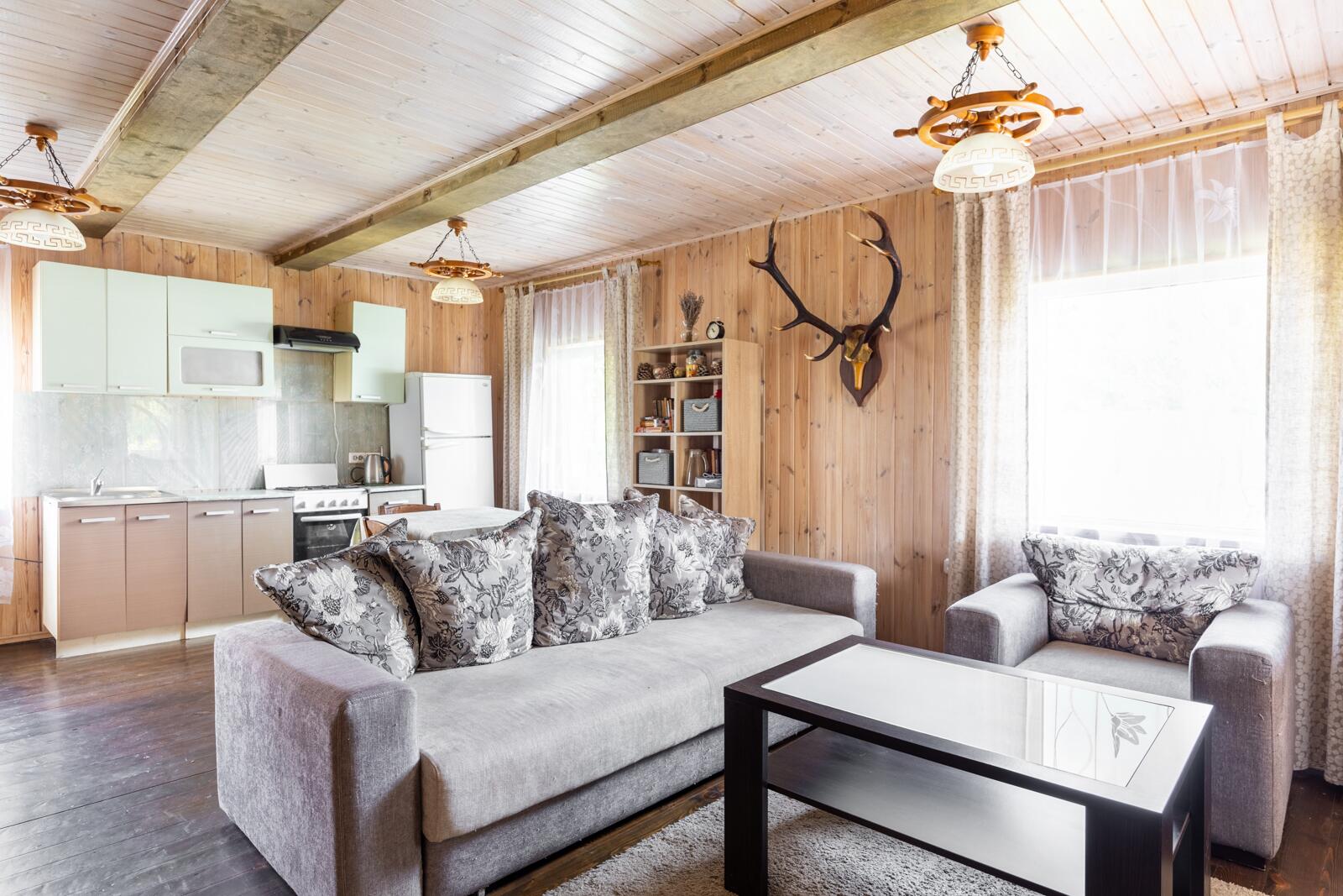 В доме 2 изолированные комнаты и большая кухня-гостиная