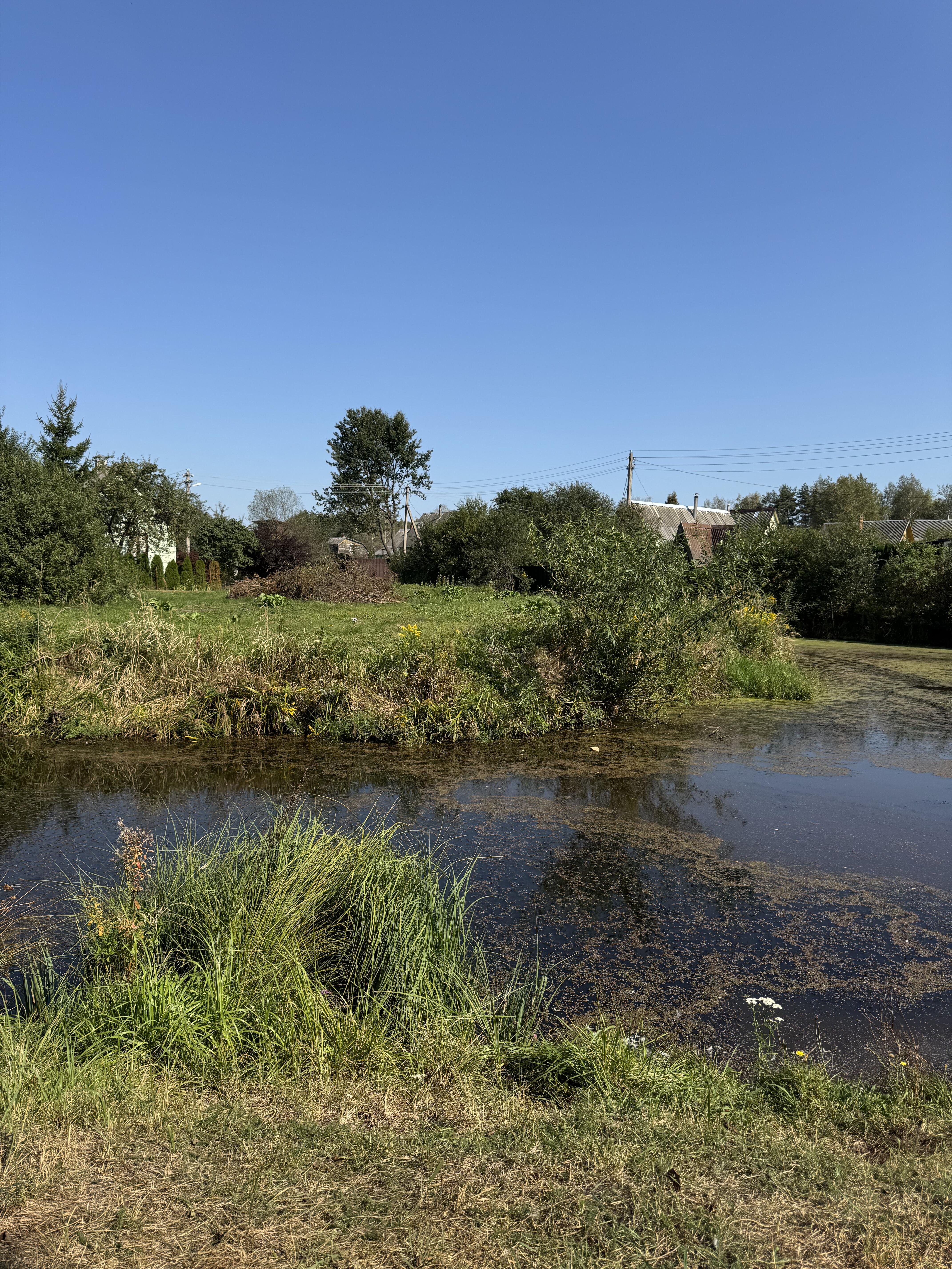 Участок ровной формы, вблизи находится небольшой пруд для рыбалки .