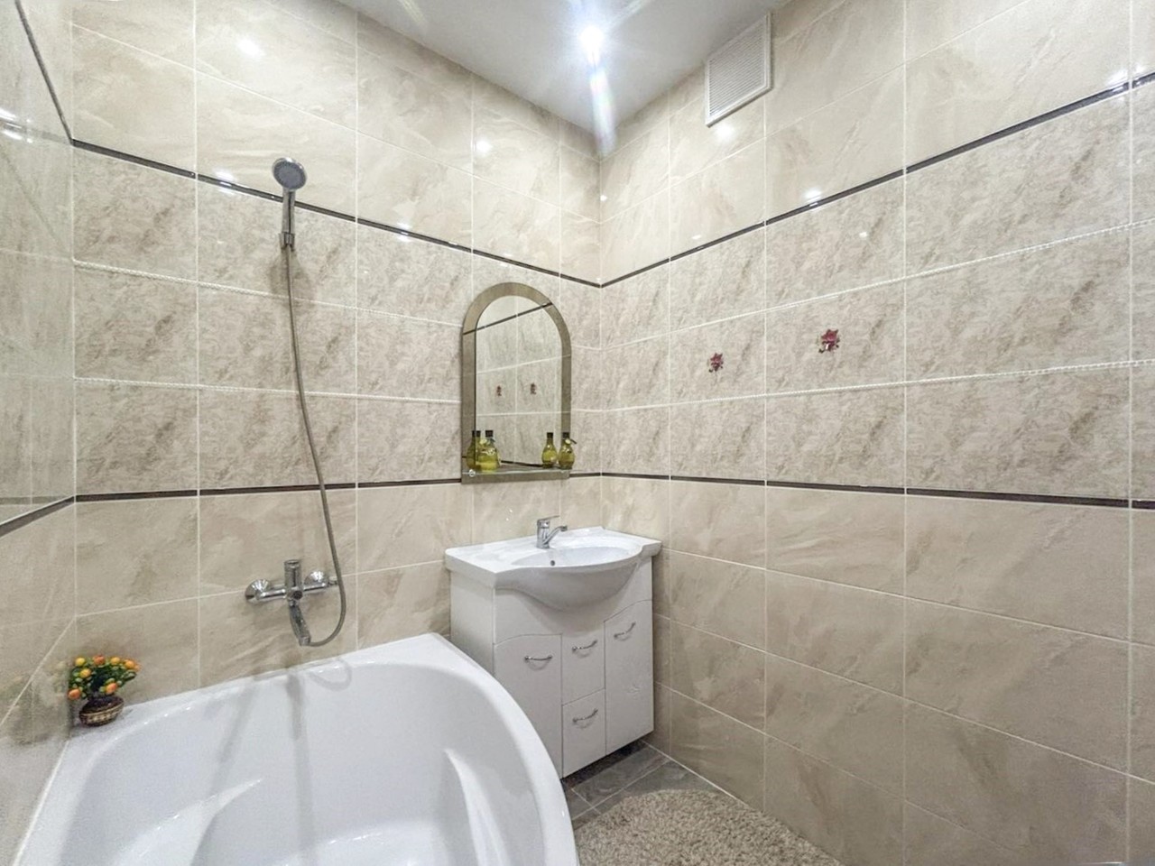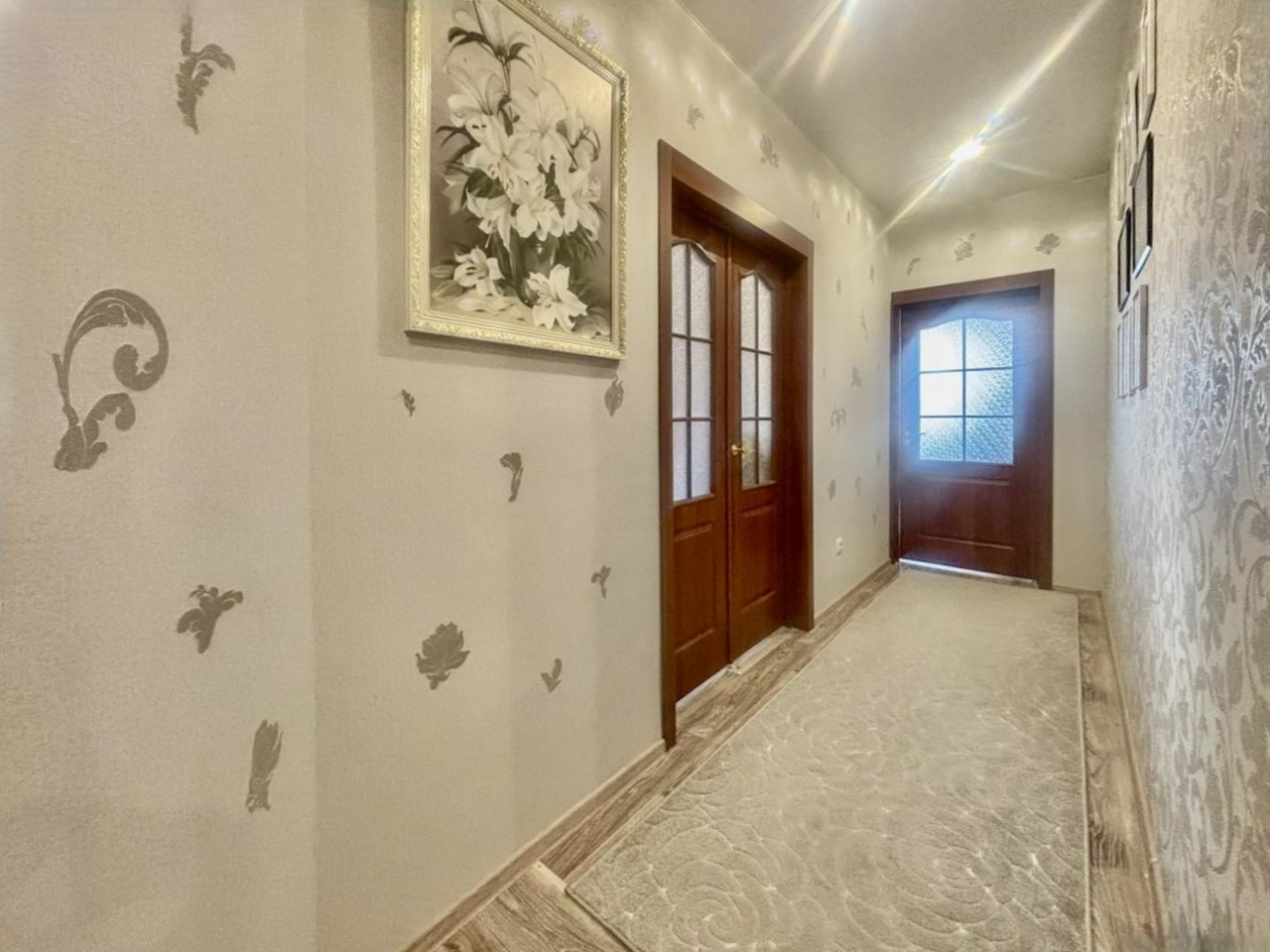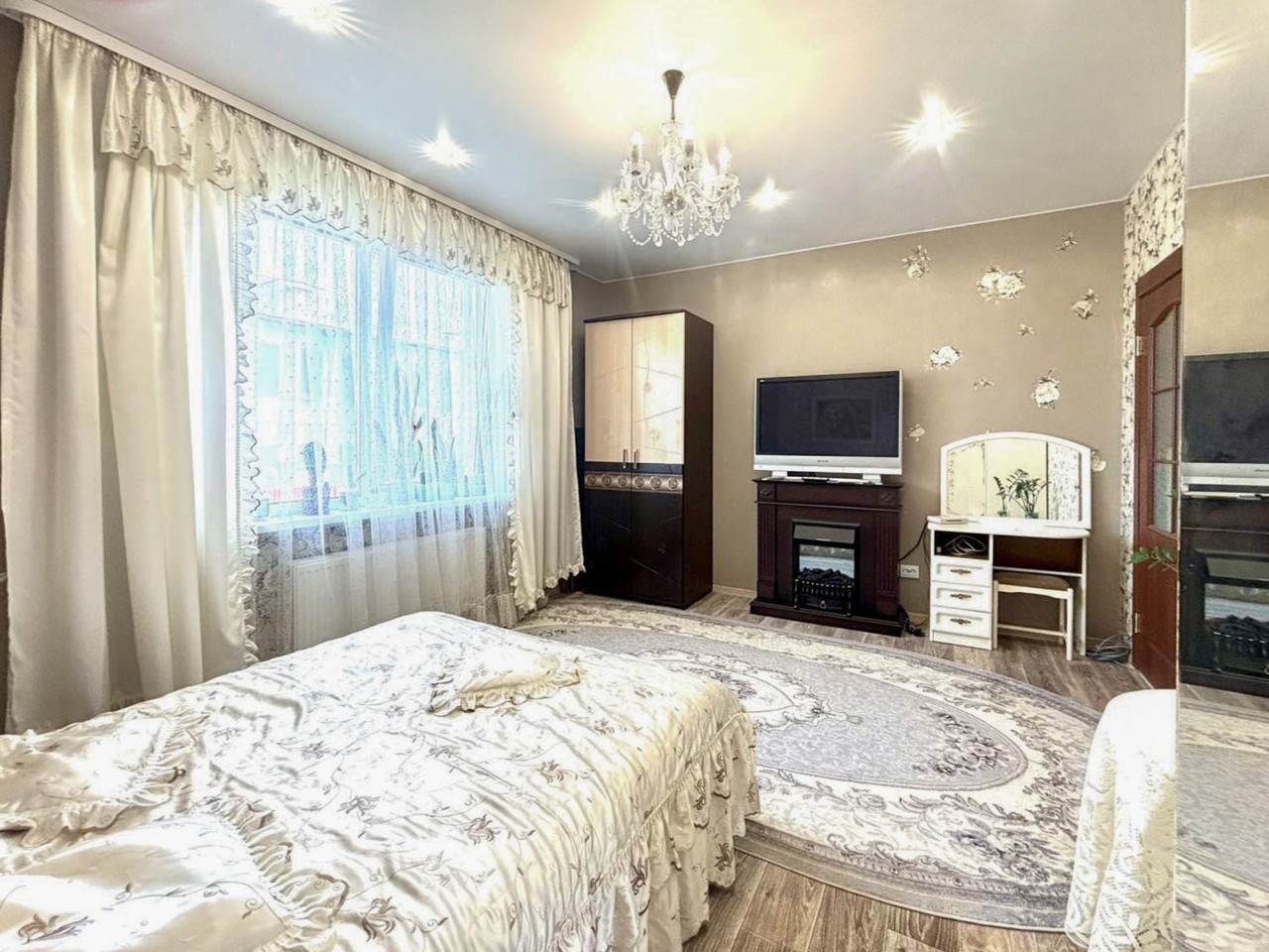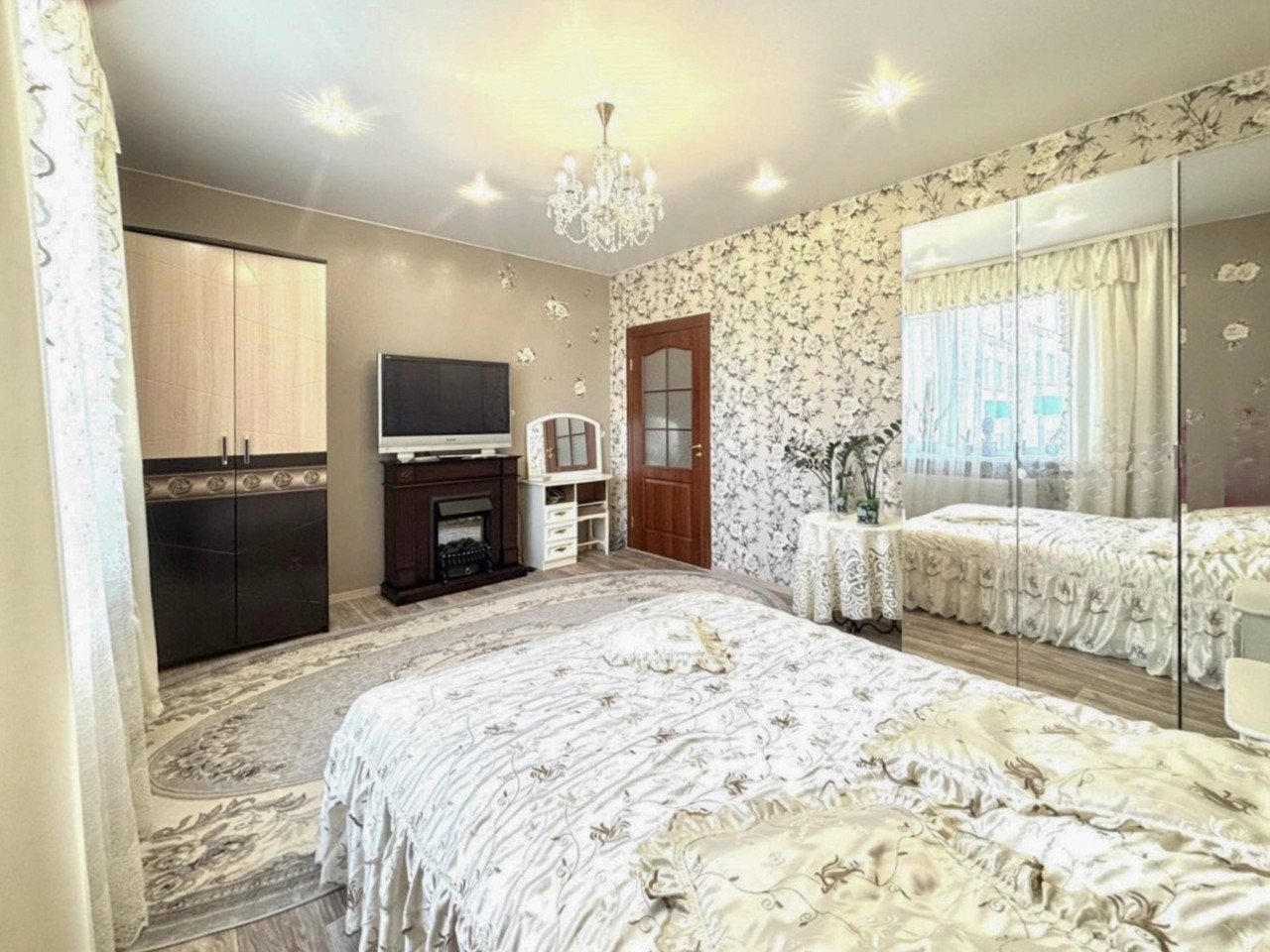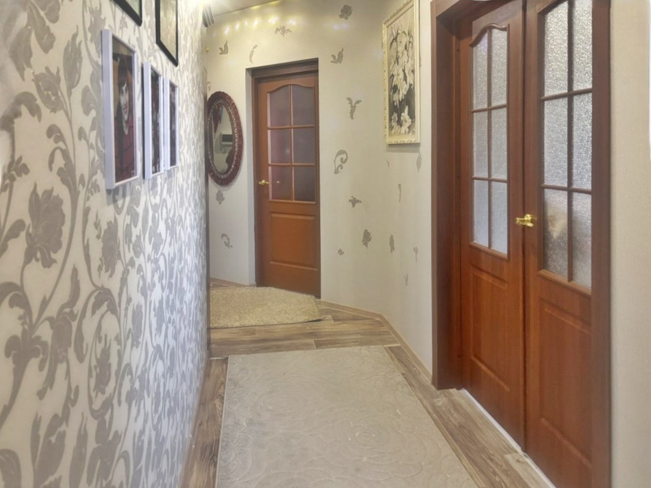 Отличный ремонт, заселяйся и живи. Стеклопакеты с ПВХ профилем, металлическая входная дверь, межкомнатные двери МДФ, натяжные потолки, на полу (в комнатах, кухне и в прихожей) уложен качественный линолеум, в санузлах - плитка. Встроенная кухня с газовой варочной панелью и духовым шкафом.