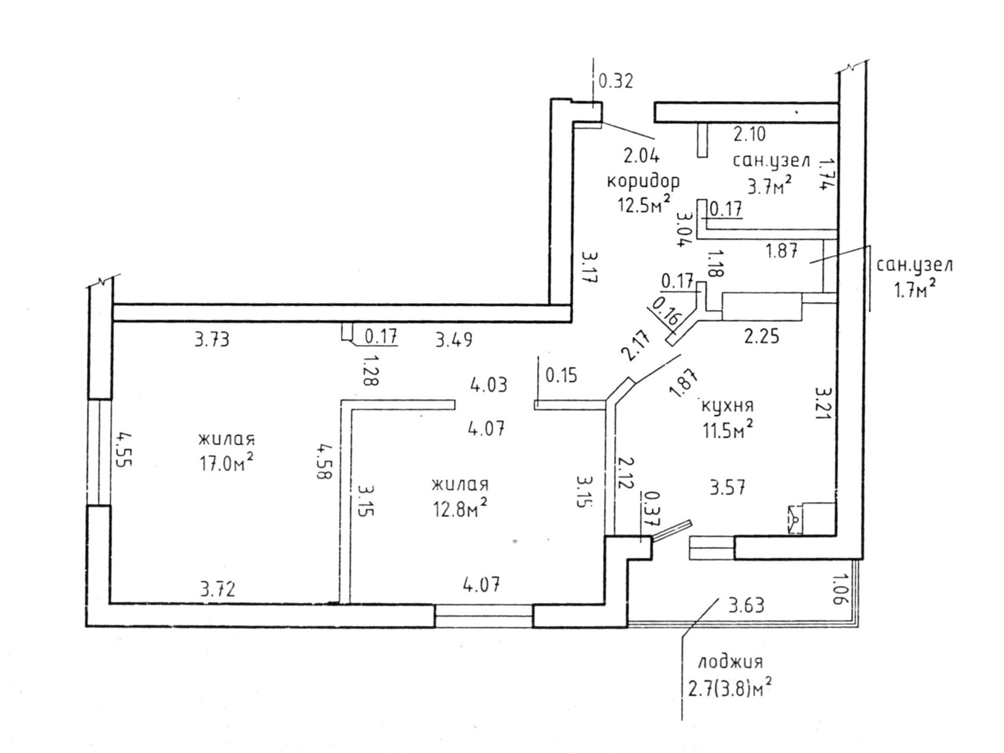 Удобная современная планировка. Общая площадь 59.2м2 (по СНБ 61.9м2), жилая 29.8м2 состоит из двух изолированных комнат (17.0м2 и 12.8м2), просторная кухня 11.5м2, высота потолков 2.7м, площадь лоджии 3.8м2, санузел раздельный. Квартира расположена на 1 высоком этаже 9 этажного блочного дома (2018 г.). Внутренние перегородки в квартире и лоджия сделаны из кирпича.