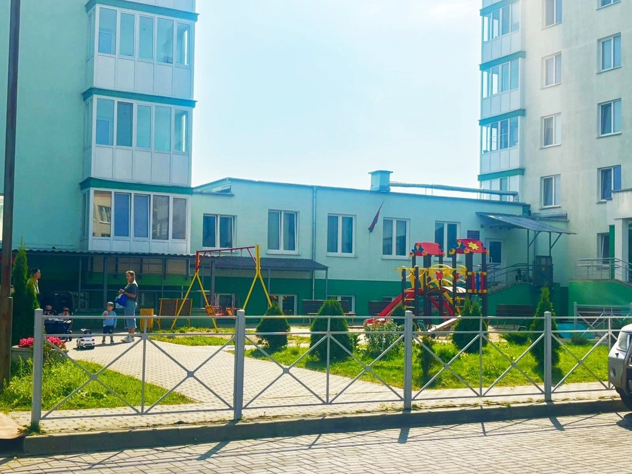 Развитая инфраструктура. Жилой комплекс располагается в центре поселка Слобода. Рядом есть детский сад, средняя школа, амбулатория, торговый центр, продуктовый рынок. Вокруг живописные места со свежим воздухом в непосредственной близости от леса.