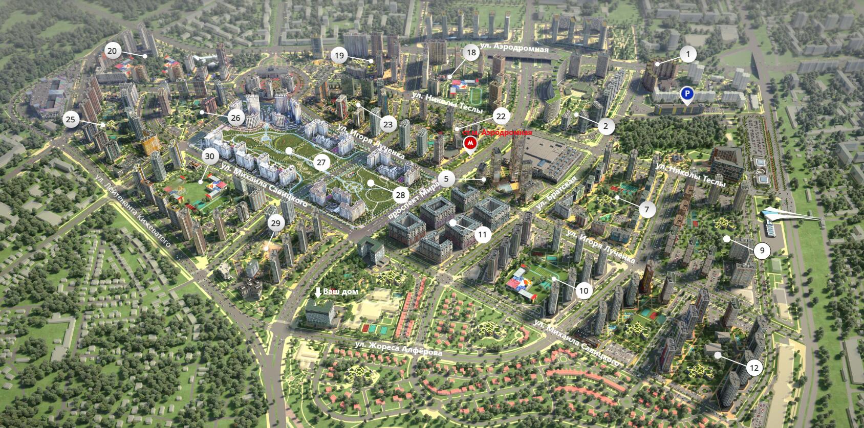 В шаговой доступности ст.м. «Аэродромная». Рядом парк с велодорожками, МФЦ и крупнейший ТРЦ АВИА МОЛЛ.