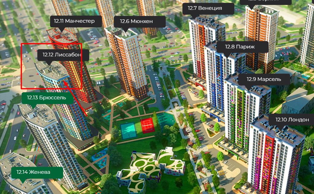 Все дома в комплексе каркасно-блочные, от 10 до 25 этажей.