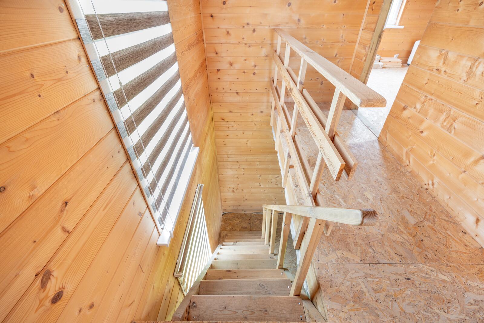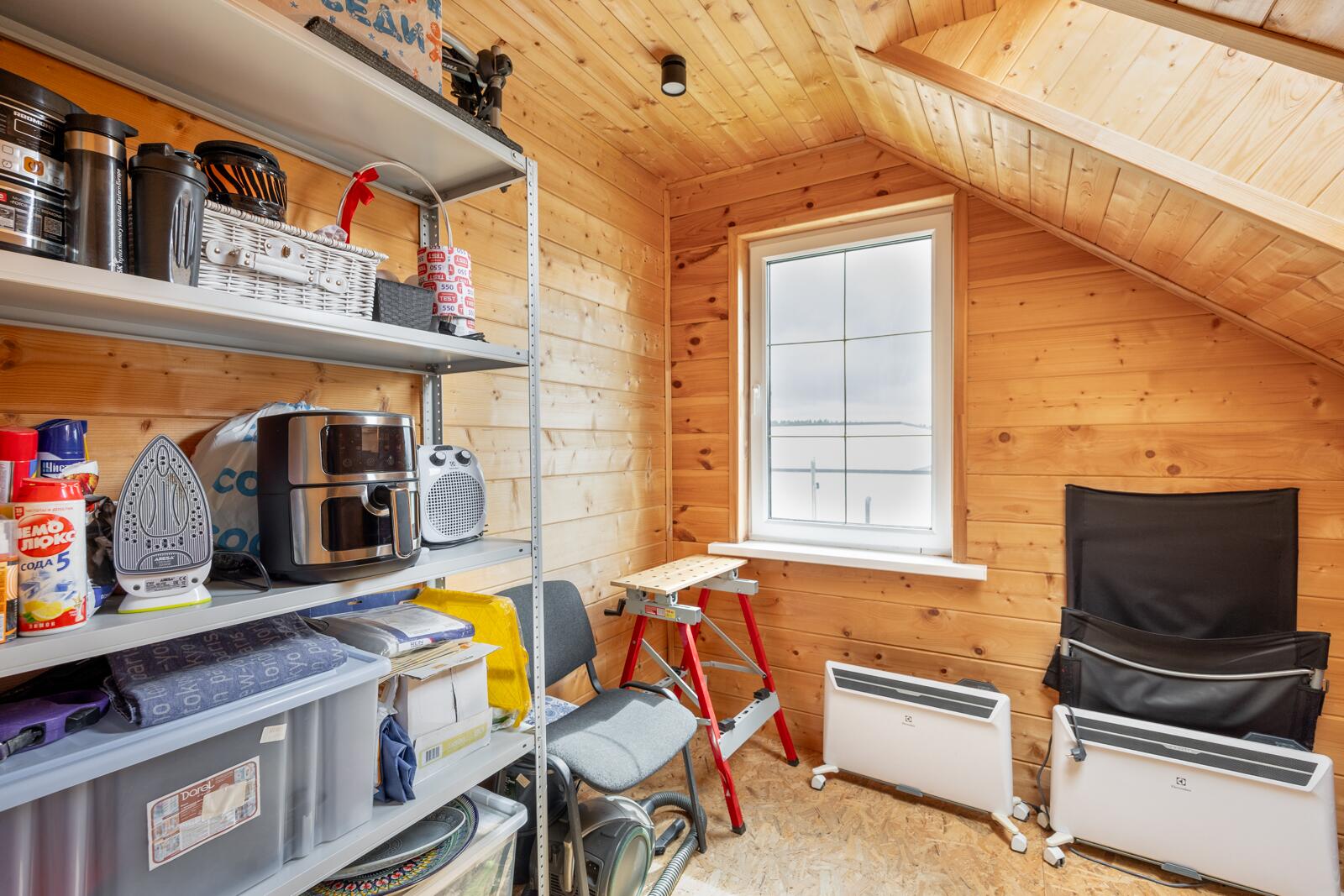 Дом построен профессиональной компанией с соблюдением всех строительных норм. Каркасный, с надёжным свайным фундаментом и брусом 20х20, с утеплёнными стенами и крышей, с качественной паро- и гидроизоляцией. Снаружи и внутри обшит деревом, окна — ПВХ KBE. Электропроводка разведена грамотно, с автоматами на каждую группу и запасом мощности. Предусмотрены розетки для электроконвекторов. Водоснабжение выполнено трубами ПВХ, установлен бойлер. Канализация — переливной септик на 4 кольца.