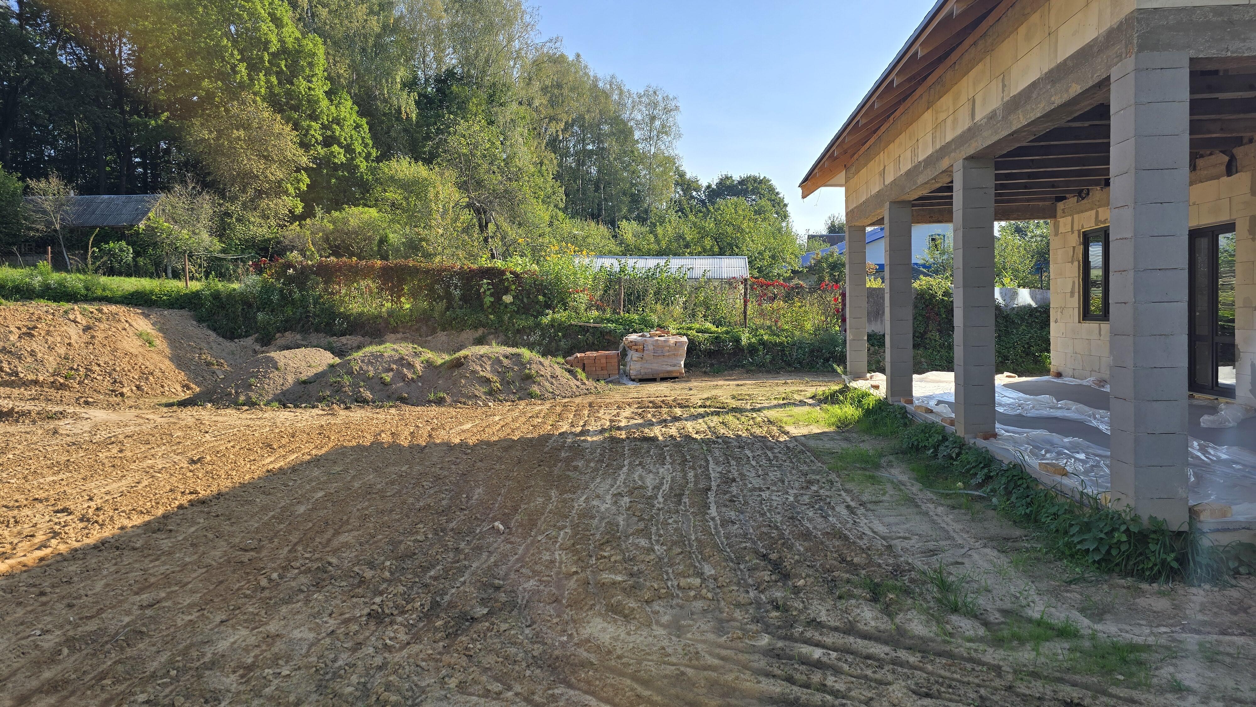 - Участок спланирован и подготовлен для финишных ландшафтных работ.