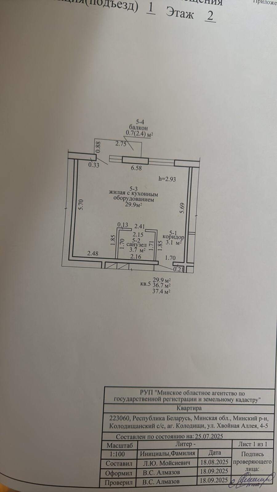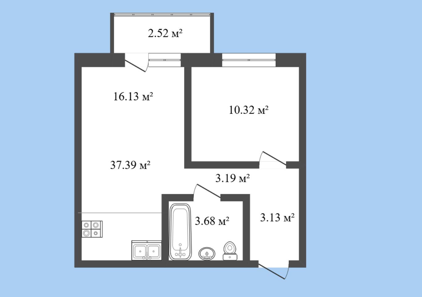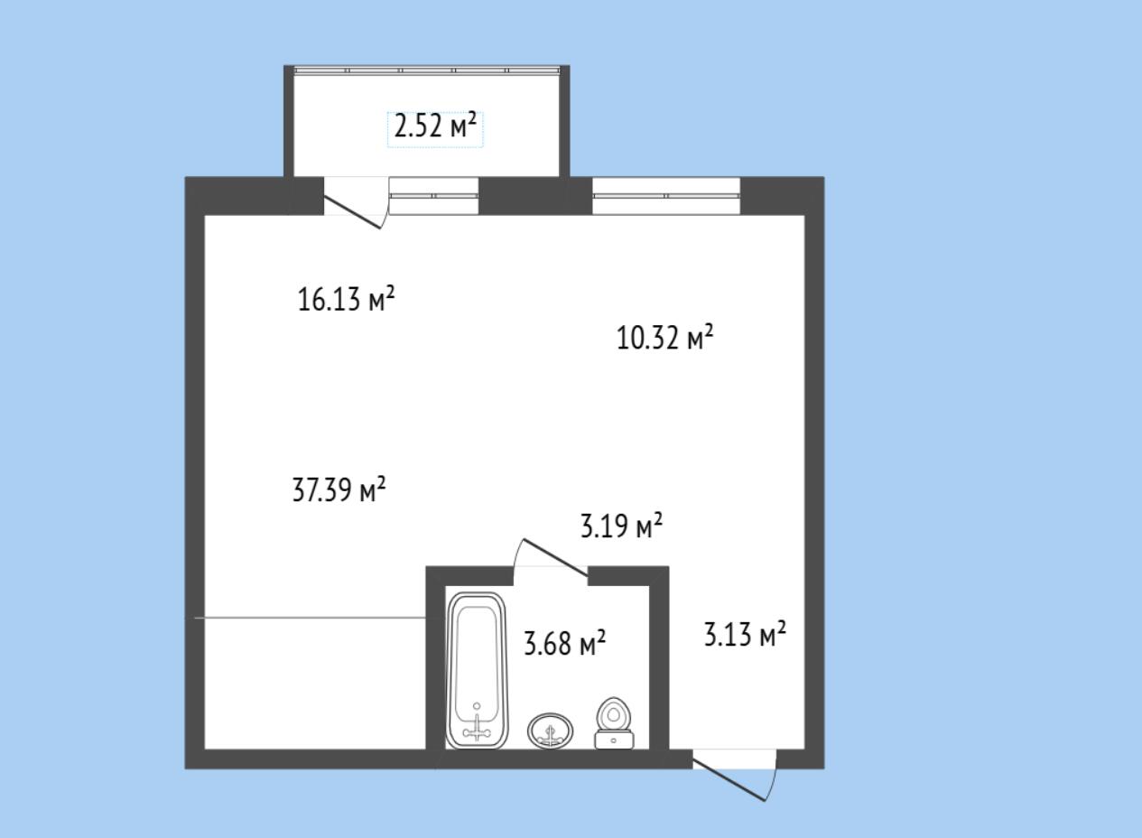 Общая площадь: 36.5 м2 (СНБ — 37.3 м2) Планировка позволяет создать 2-комнатную квартиру евроформата Высота потолков — 2.92 м Возведены перегородки вокруг санузла Установлены радиаторы с терморегуляторами, современные стеклопакеты Разведено электричество, выполнены выводы под сантехнику Установлен унитаз Инфраструктура дома: