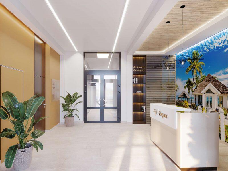 На первом этаже располагается лобби с уникальным дизайном и место для консьержа.