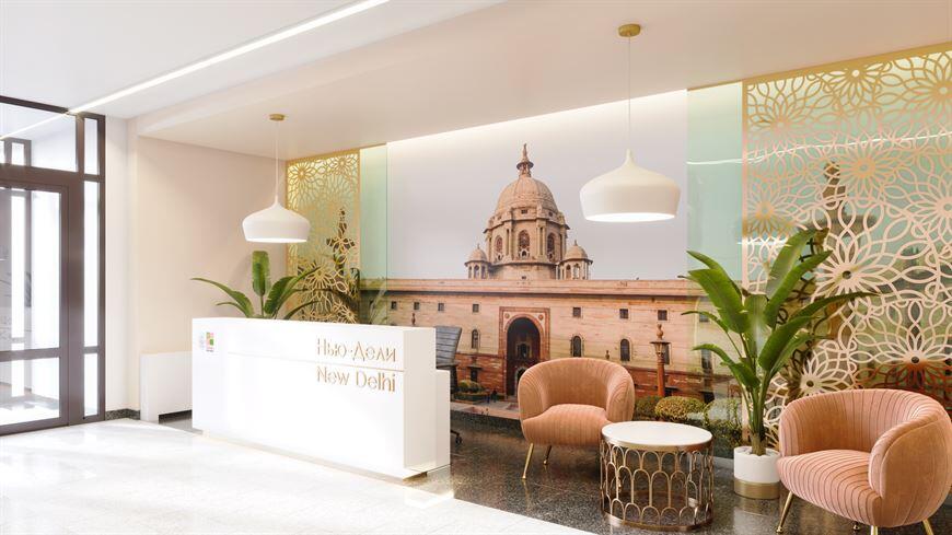 Зеленая парковая зона, международный финансовый центр и крупнейший торговый центр Авиа Молл в центре комплекса