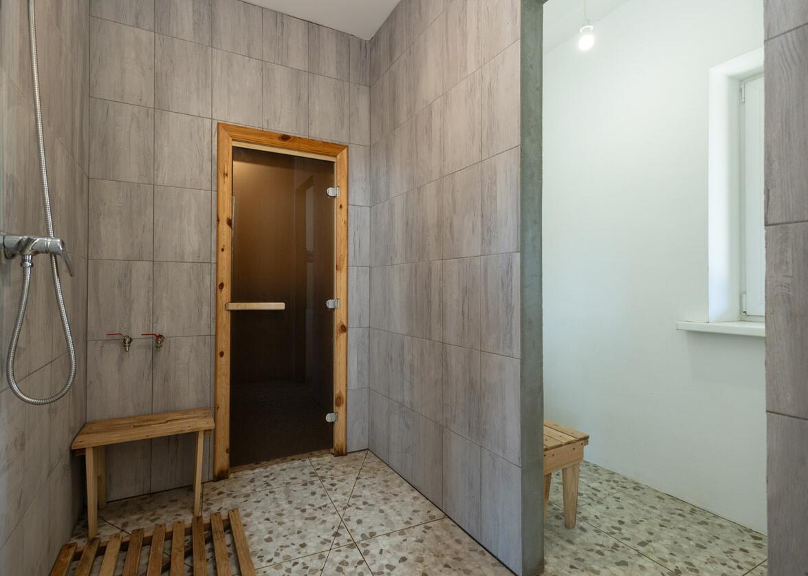 Электроотопление в сочетании с тёплыми полами обеспечит комфорт в холодное время года.Установленные хорошие стеклопакеты надёжно сохраняют тепло и защищают от уличного шума.Крыша выполнена из металлочерепицы высокого качества, что гарантирует долговечность и надёжность строения. Крыша имеет пирамидальную форму, что создает особую атмосферу и оздоравливающие волны, способствующие гармонии в доме.Гостевой домик оборудован баней с парилкой и душем, что создаст возможности для расслабления и оздоровления. Вода подаётся из скважины глубиной 80 м, что гарантирует её чистоту и свежесть.