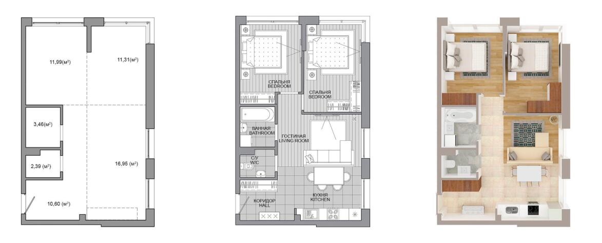 · Свободная планировка, которая позволяет рационально использовать пространство.