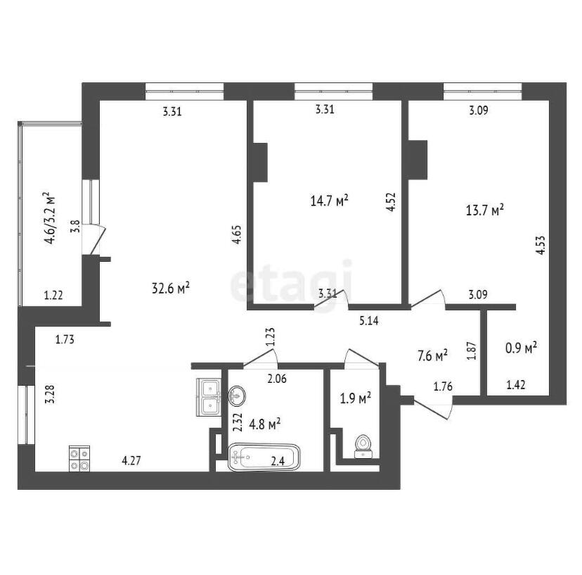 - две отдельные просторные спальни с гармоничной геометрией: 14.7 м2 и 13.7 м2 с гардеробной