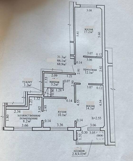 Общей площадью по СНБ-68.9 м2, общей-66,1м2.