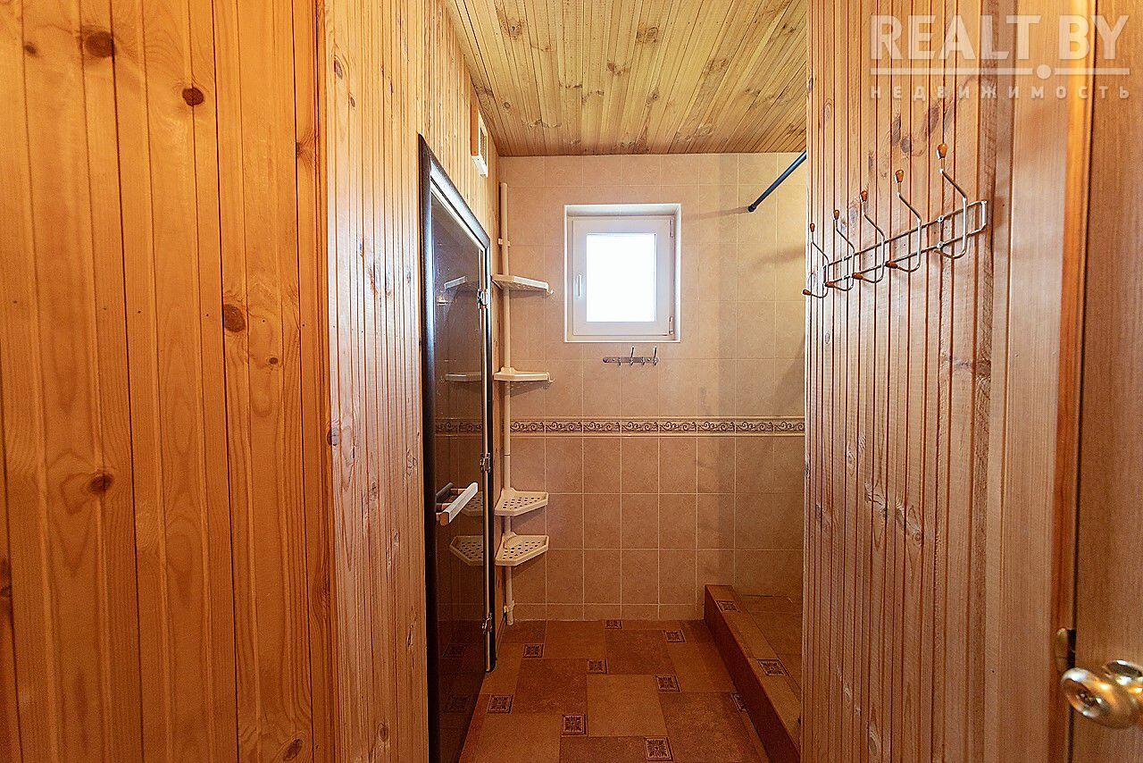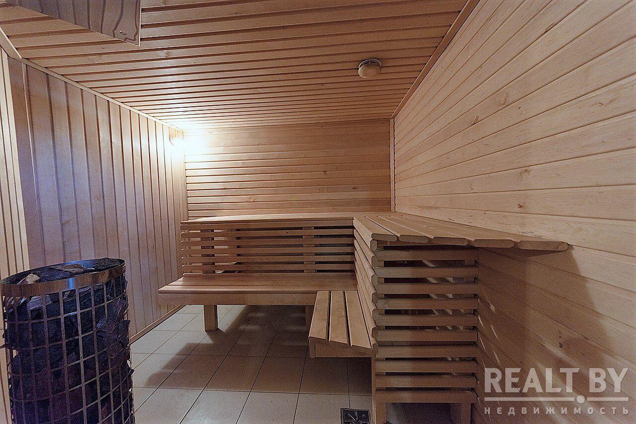 Установлены радиаторы и тёплые полы на первом этаже. Все помещения большие квадратной формы. Потолки 2.7 метра. На первом этаже есть возможность установки камина, выведен отдельный канал для дымохода. Так же в доме есть вместительный гараж с ямой, сауна с душевой и комнатой отдыха, техническое помещение.