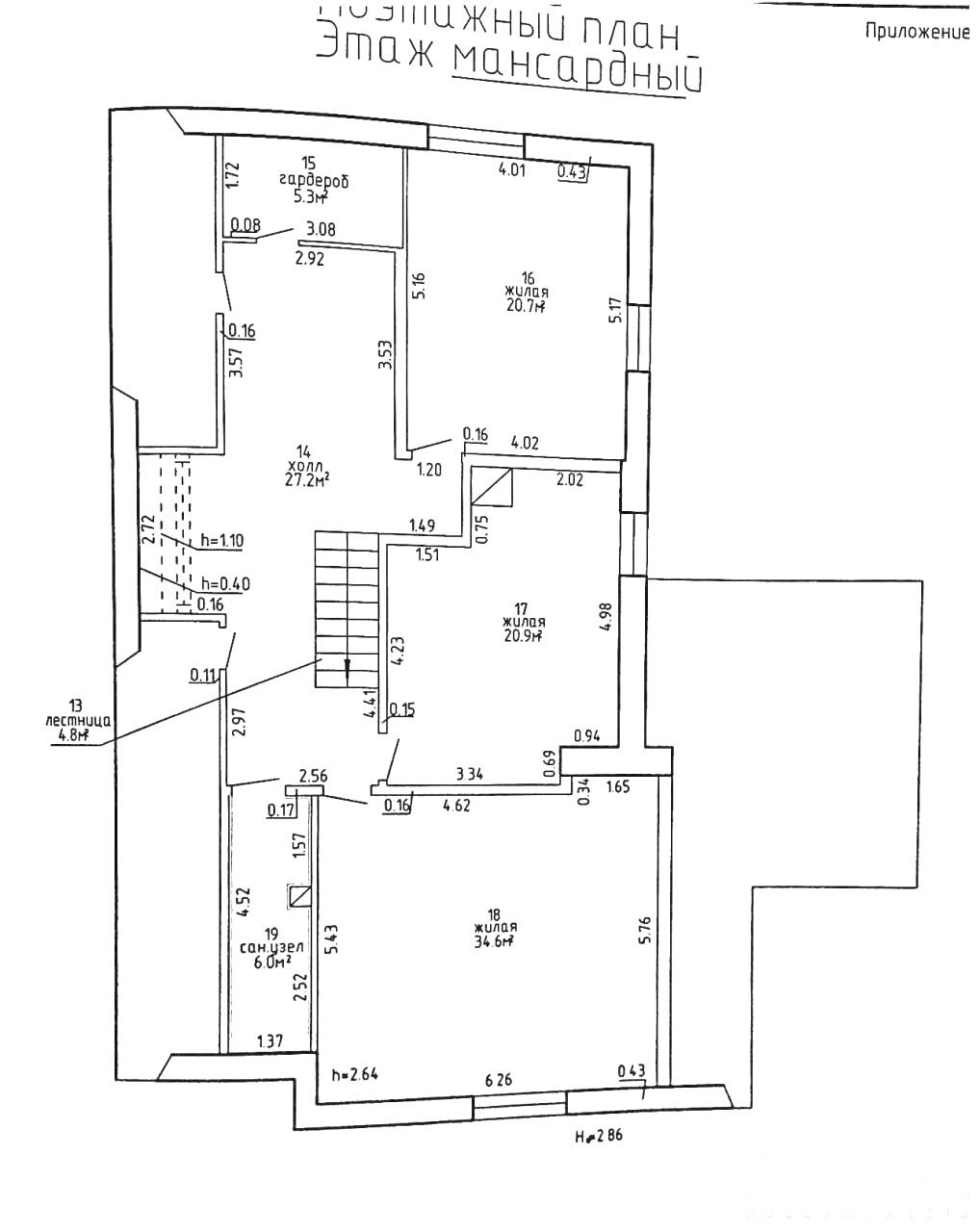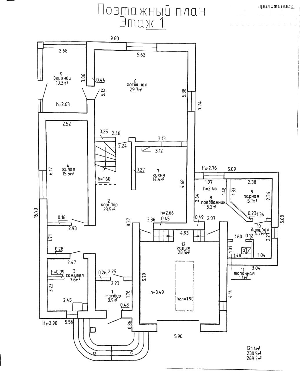 Высота потолков в доме - 2.7 метра.