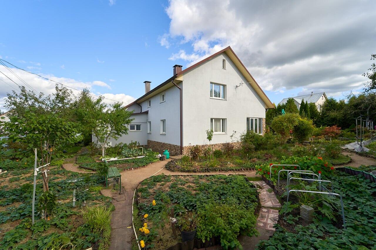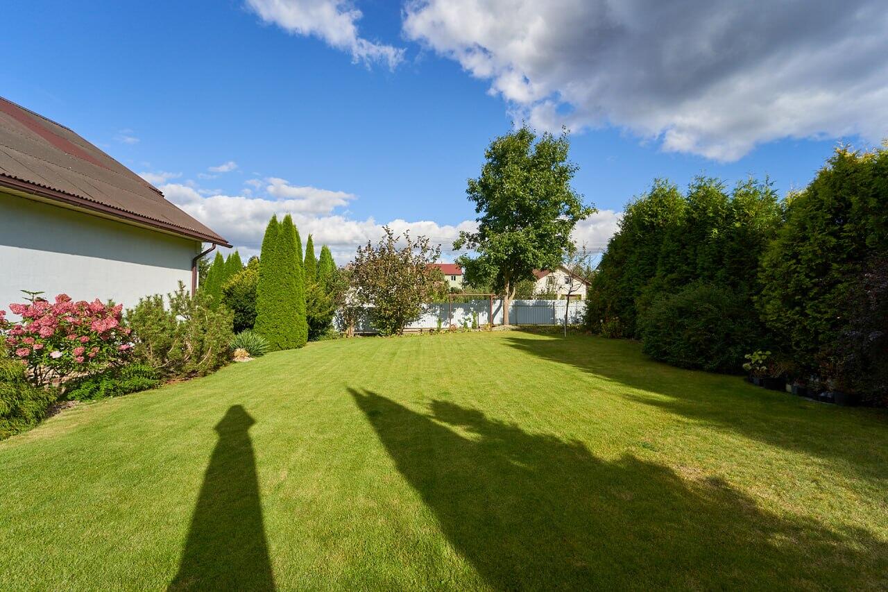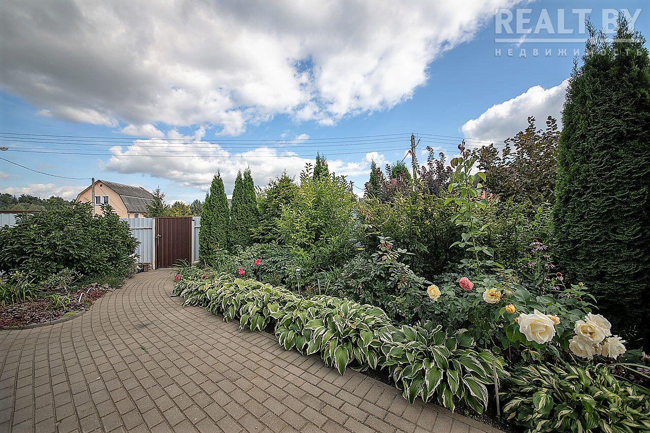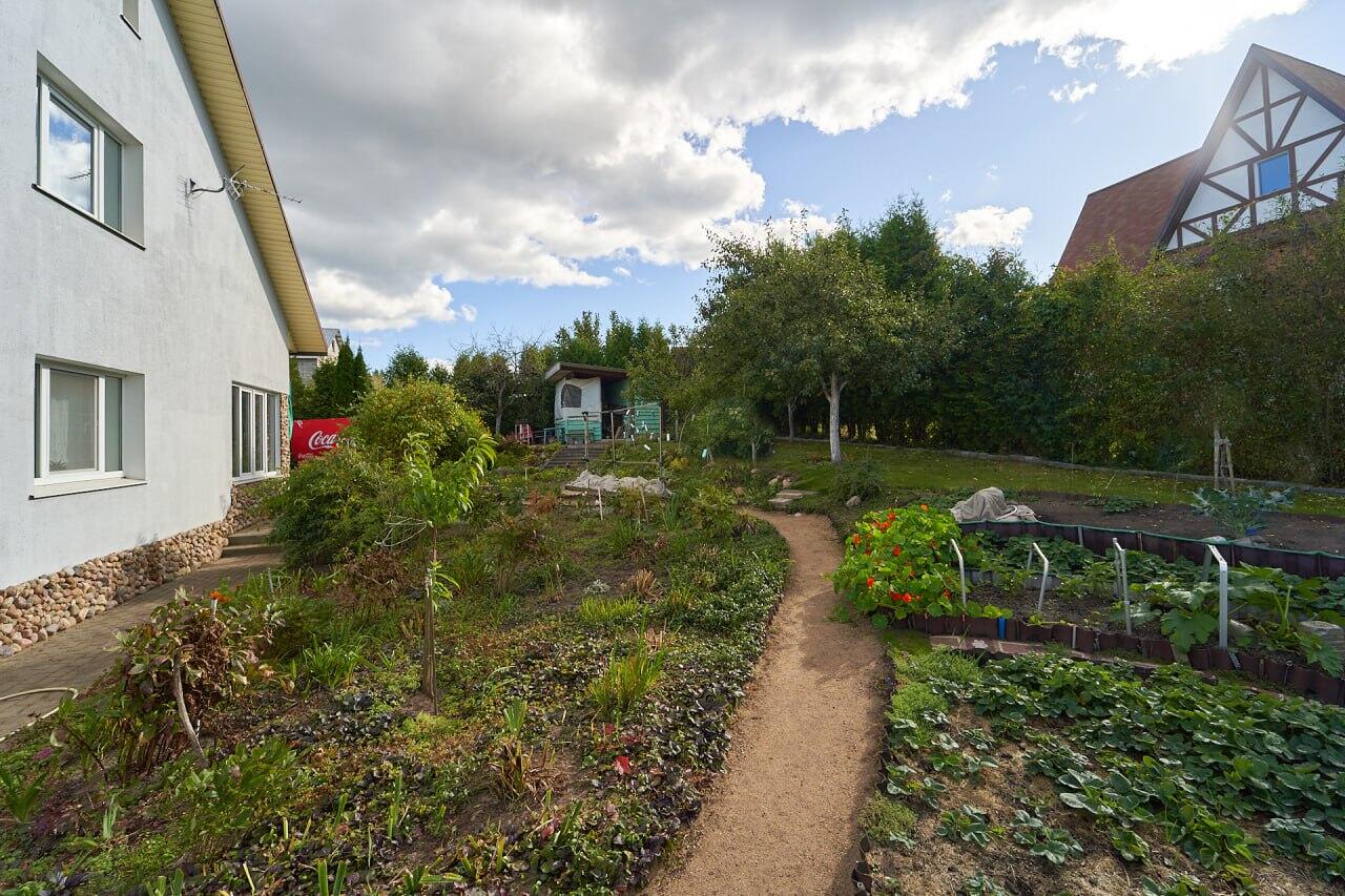 Вдоль забора высажены туи, высота около 4 - 5 метров. На участке много красивых хвойных деревьев, декоративных кустов и цветов: тисы, кипарисовики, клёны, магнолии, рододендроны, азалии, редкие сорта многолетних цветов (розы, лилейники, лилии, пионы древовидные и др. ). Так же на участке есть плодовый сад: 4 груши, 4 яблони, сливы жёлтые, 2 вишни. Рядом с садом огород: кусты малины, крыжовника, смородины, жимолость, грецкий орех, фундук, голубика, клубника и земляника. На участке имеется хозблок с верандой.