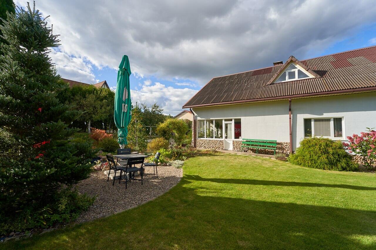 В непосредственной близости от дома сосновый лес и озеро.