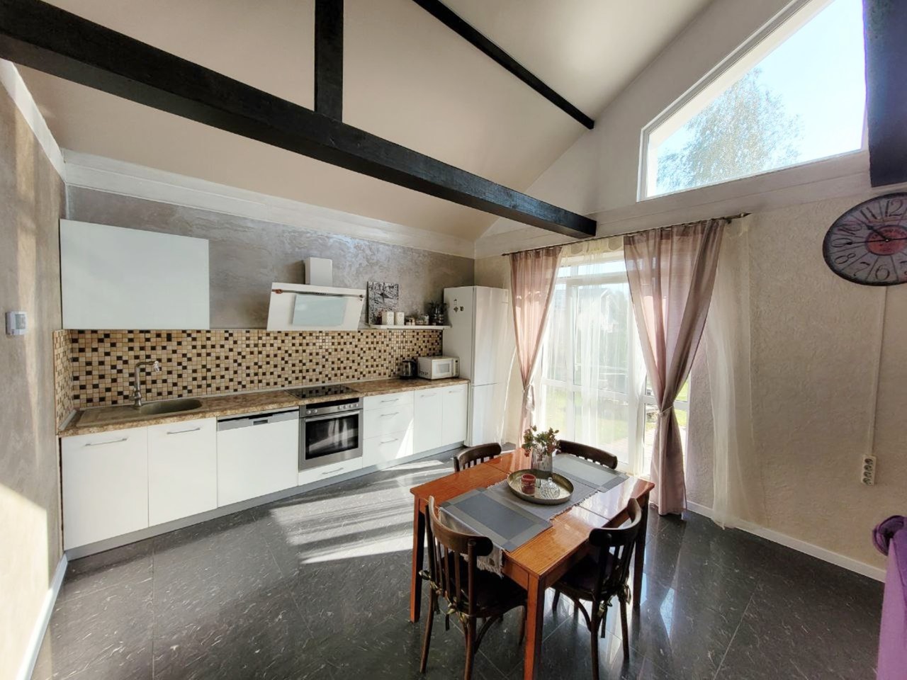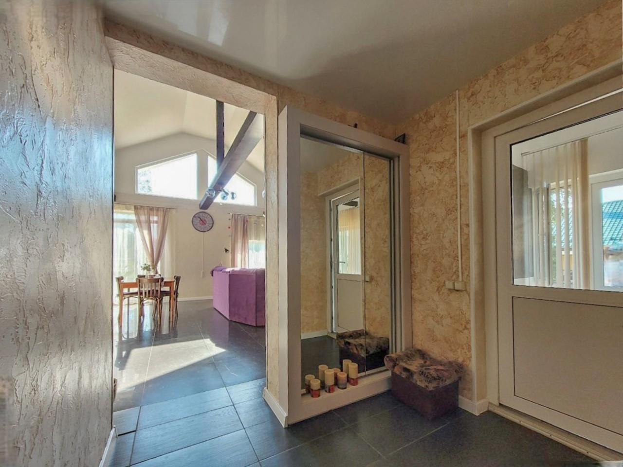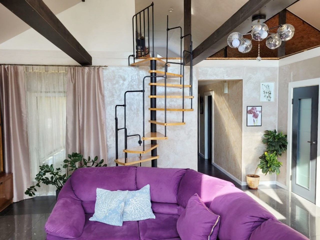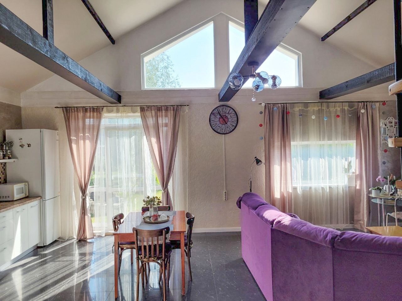 В доме есть просторная кухня-гостиная 39.2м2 с высокими потолками и выходом на зону отдыха, две изолированные спальни, санузел, гардеробная, зона для бильярда или кабинета на мансардном этаже, а также просторная закрытая терраса. Возможна продажа дома со всей мебелью и техникой.