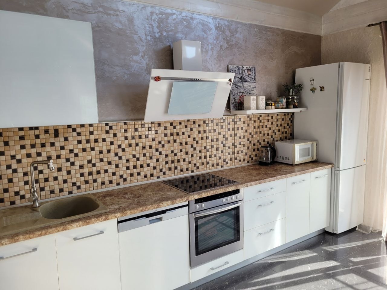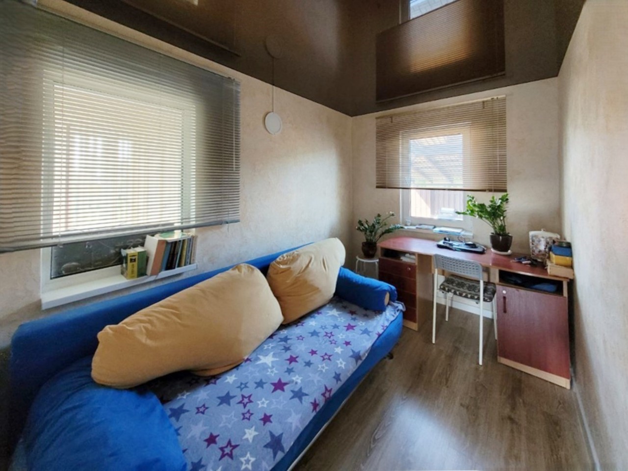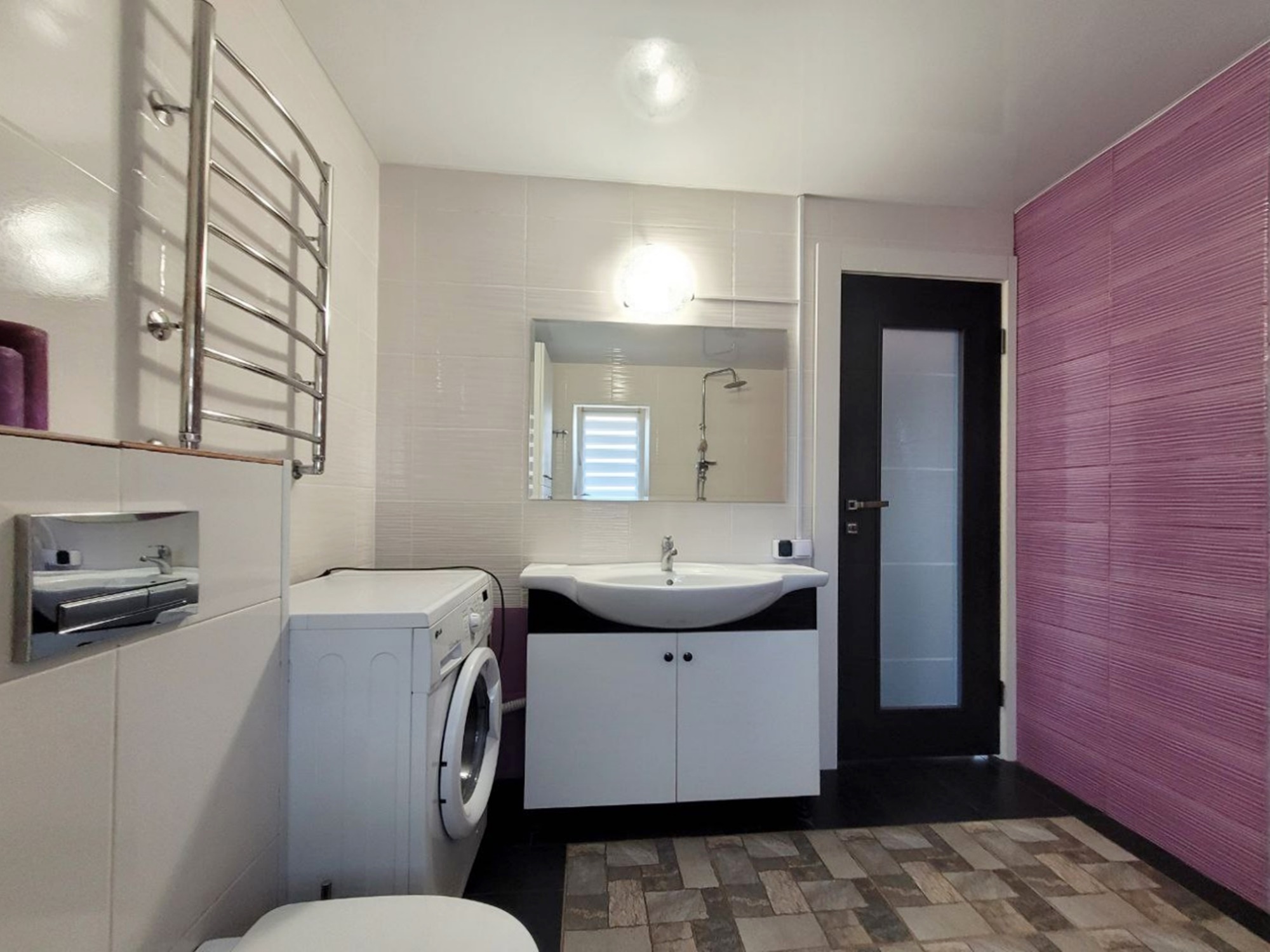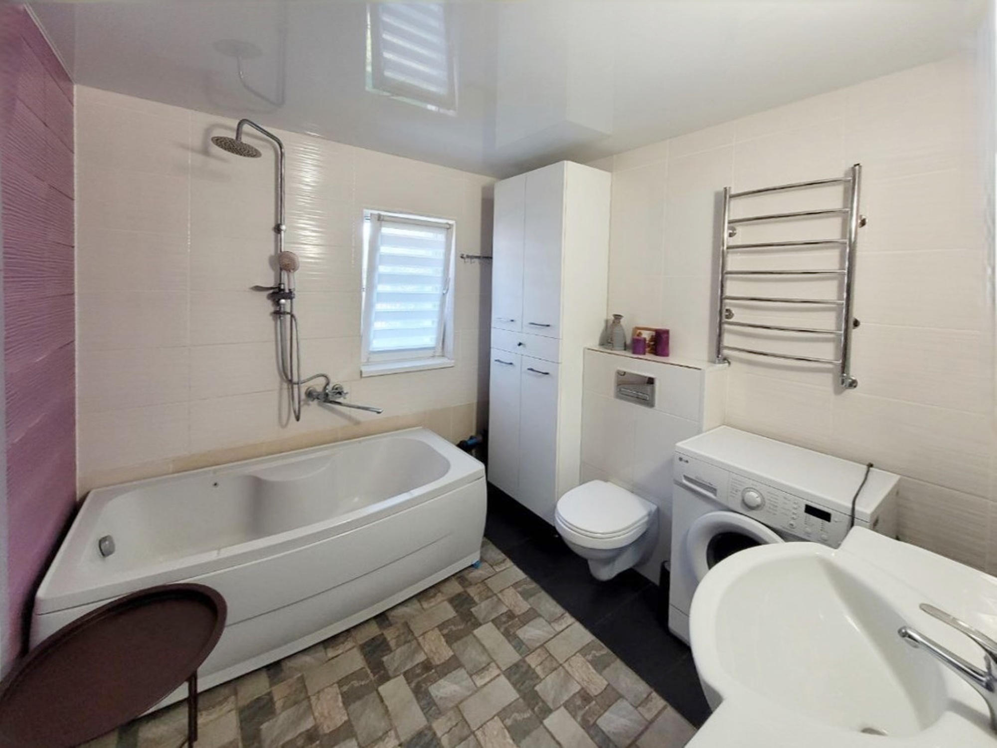 В доме есть просторная кухня-гостиная 39.2м2 с высокими потолками и выходом на зону отдыха, две изолированные спальни, санузел, гардеробная, зона для бильярда или кабинета на мансардном этаже, а также просторная закрытая терраса. Возможна продажа дома со всей мебелью и техникой.