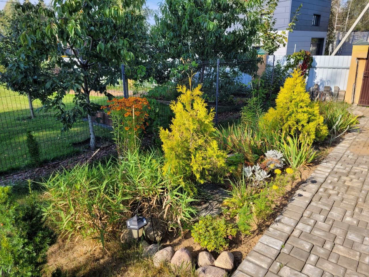Участок 15 соток предоставлен на праве пожизненного наследуемого владения, огорожен, установлены ворота с автоматическим открыванием. Возле дома оборудован навес для автомобилей и зона для барбекю, посажены плодовые деревья, кусты.