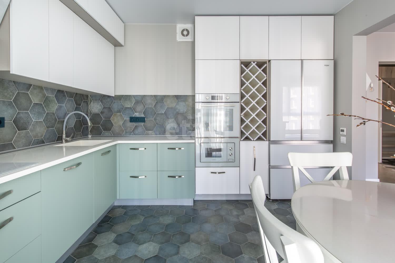 Готовая кухня: Кухня оборудована современным гарнитуром, встроенной техникой известных брендов (двухстворчатый холодильник, варочная панель, духовой шкаф, посудомоечная машина, вытяжка).