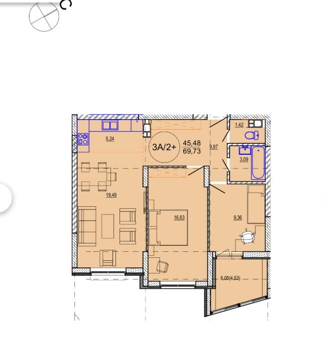 Общая площадь 69.73 м²