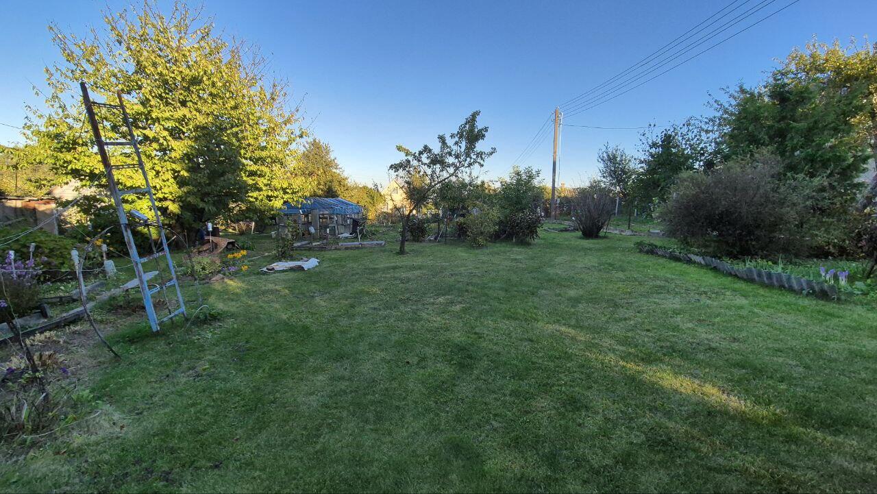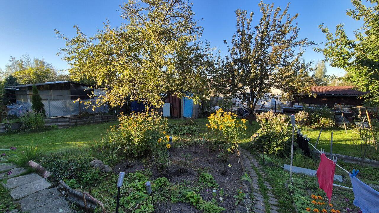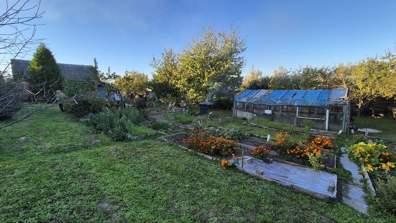 Ухоженный участок, на котором расположен садовый домик, теплица, туалет и душ на улице.