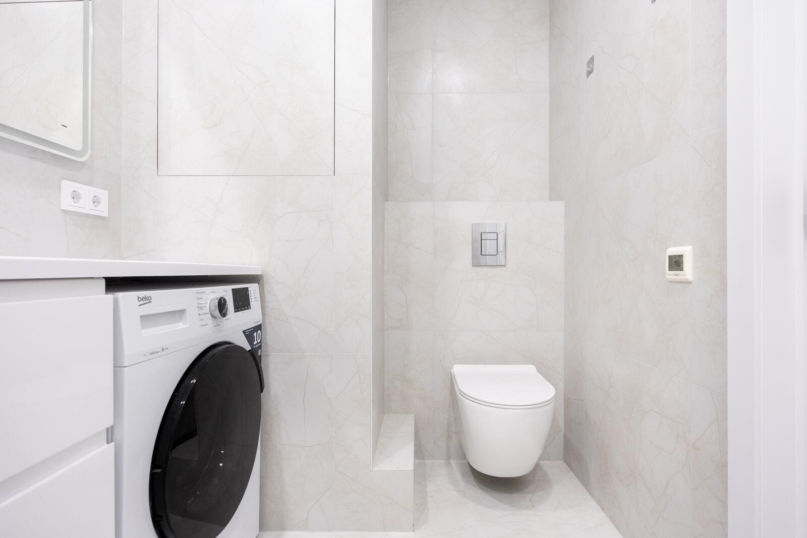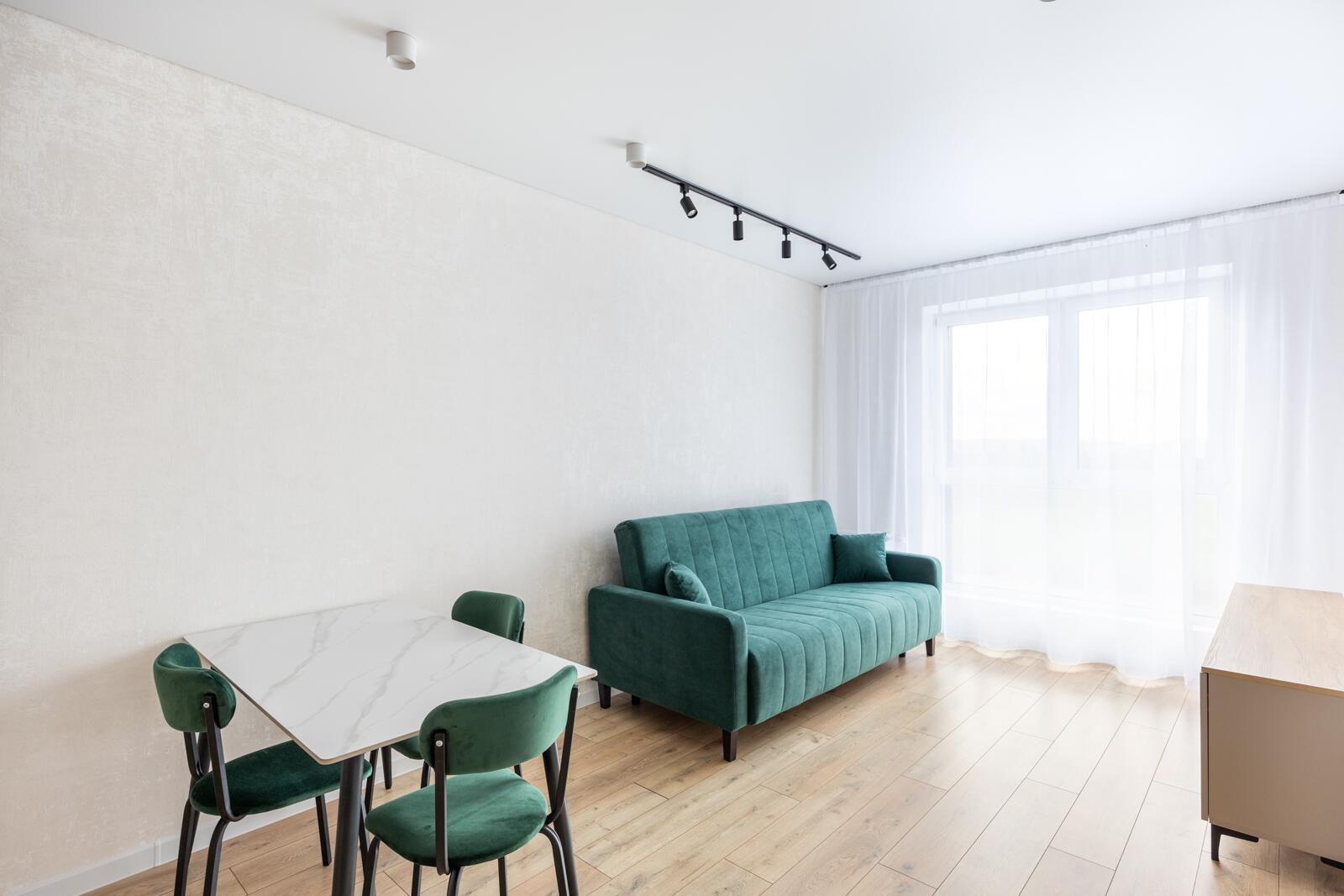 Уютная светлая квартира с современным новым ремонтом. На полу в зоне прихожей - керамогранит, в гостиной и спальне – ламинат повышенной прочности. Во всей квартире натяжной потолок с теневым плинтусом и подстветкой (в зоне гостиной трековые светильники).