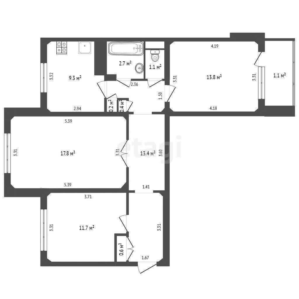 · Площадь по СНБ 72.1 м.кв., общая – 71 м.кв., жилая – 43.3 м.кв., кухня – 9.3 м.кв.