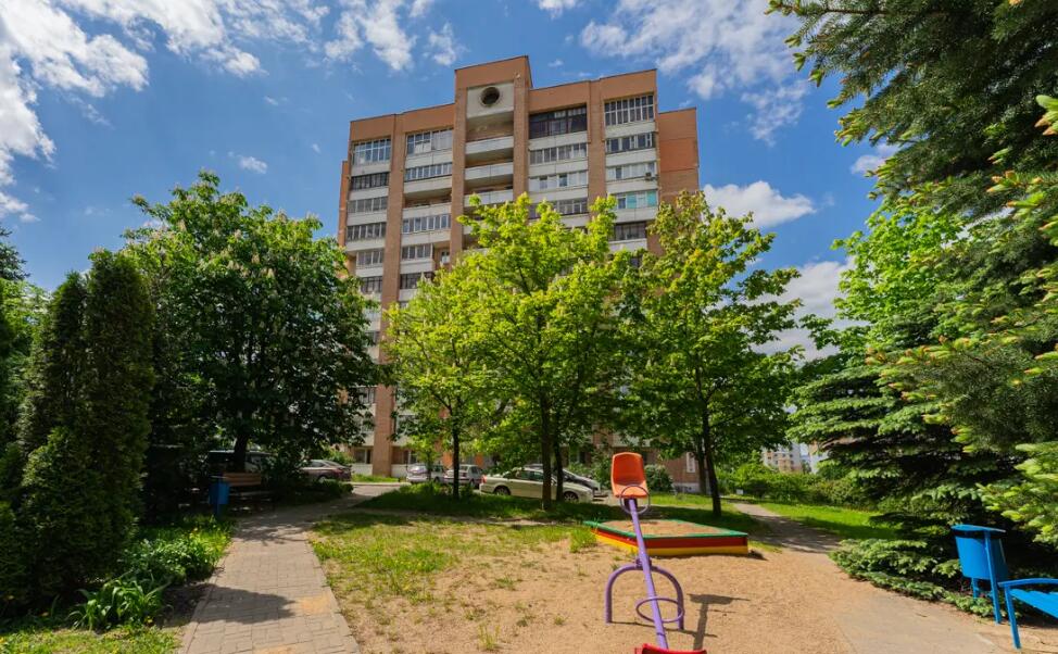 Квартира расположена в Центральном районе с развитой инфраструктурой. Рядом находятся школы, гимназии, детские сады, множество магазинов и торговых центров (ТРЦ Арена Сити, ТРЦ Palazzo, ТРЦ Замок), а также спортивные заведения (Falcon club, Футбольный манеж, Минск Арена). В шаговой доступности поликлиника, аптеки и банки.