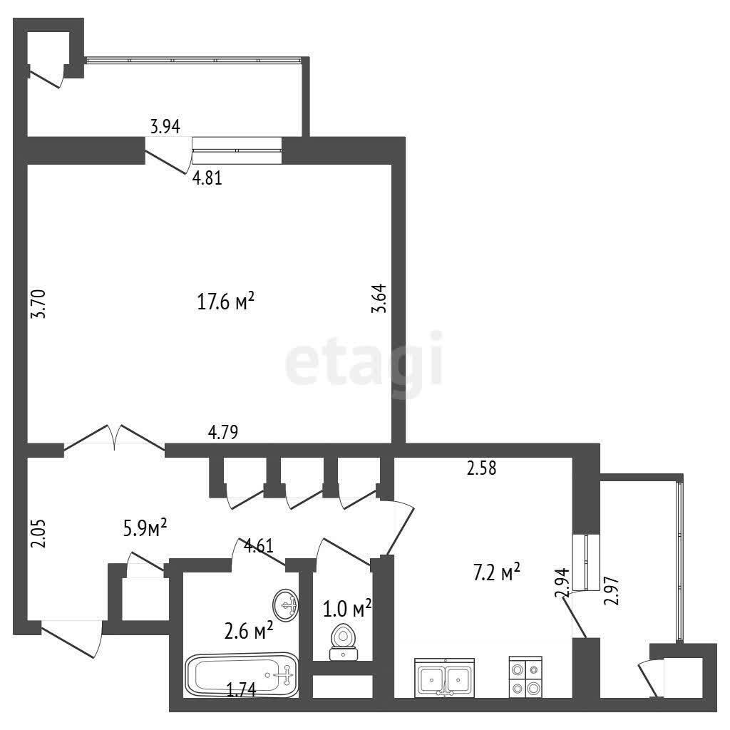 – Жилая: 17,6 м2