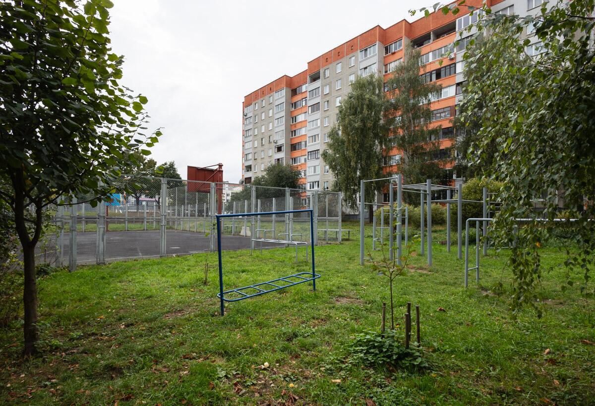 Тихий благоустроенный двор оборудован детской площадкой, современной футбольной и баскетбольной площадкой, спортивными тренажерами!