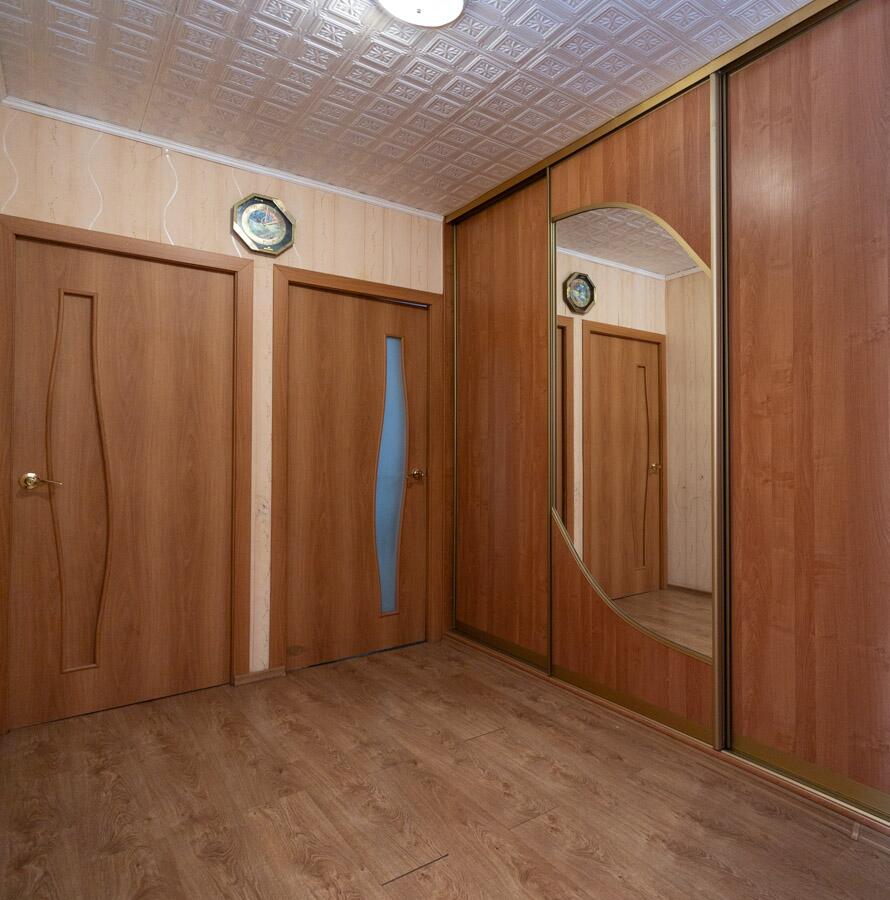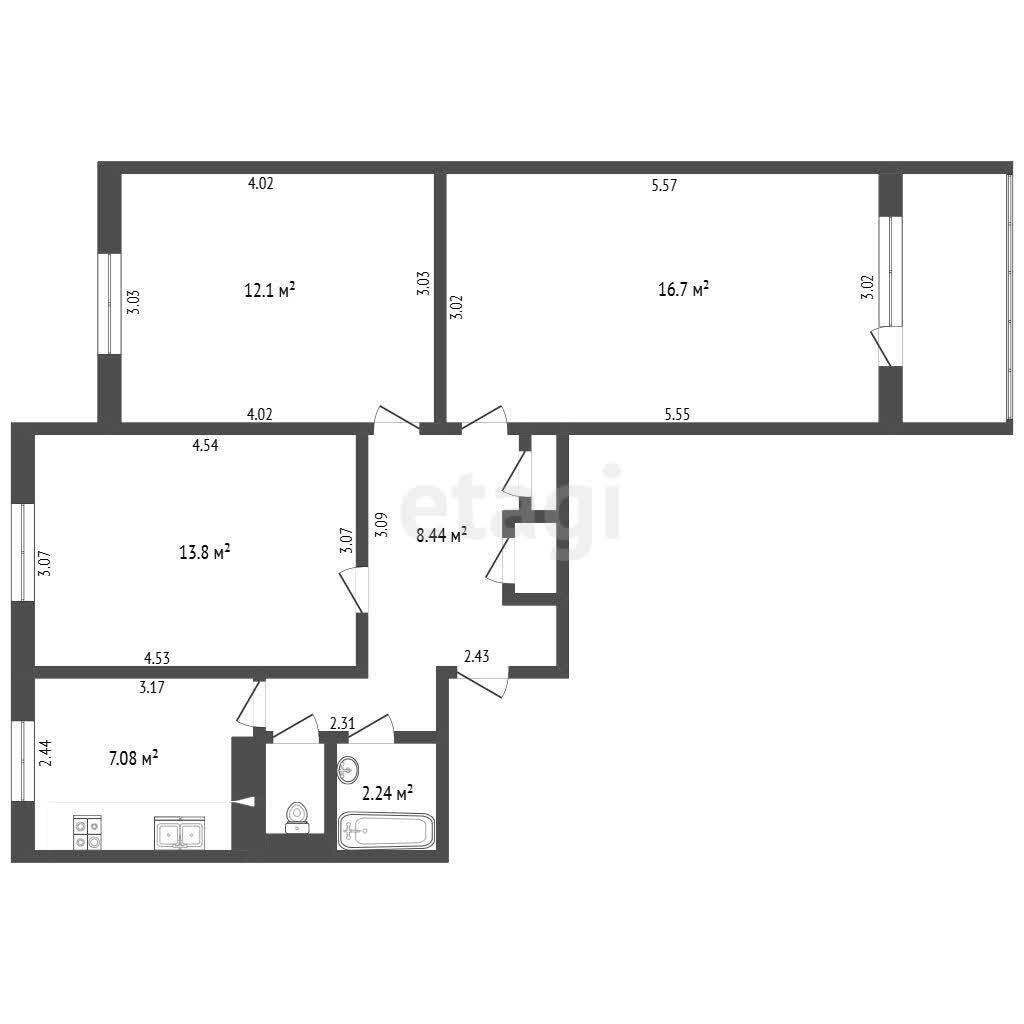 Три изолированных комнаты (16.79 м2, 13.88 м2 и 12.18 м2) кухня 7,08 м2, раздельный санузел, в коридоре оборудован вместительный шкаф-купе. Окна квартиры выходят на разные стороны дома (северо-восток).