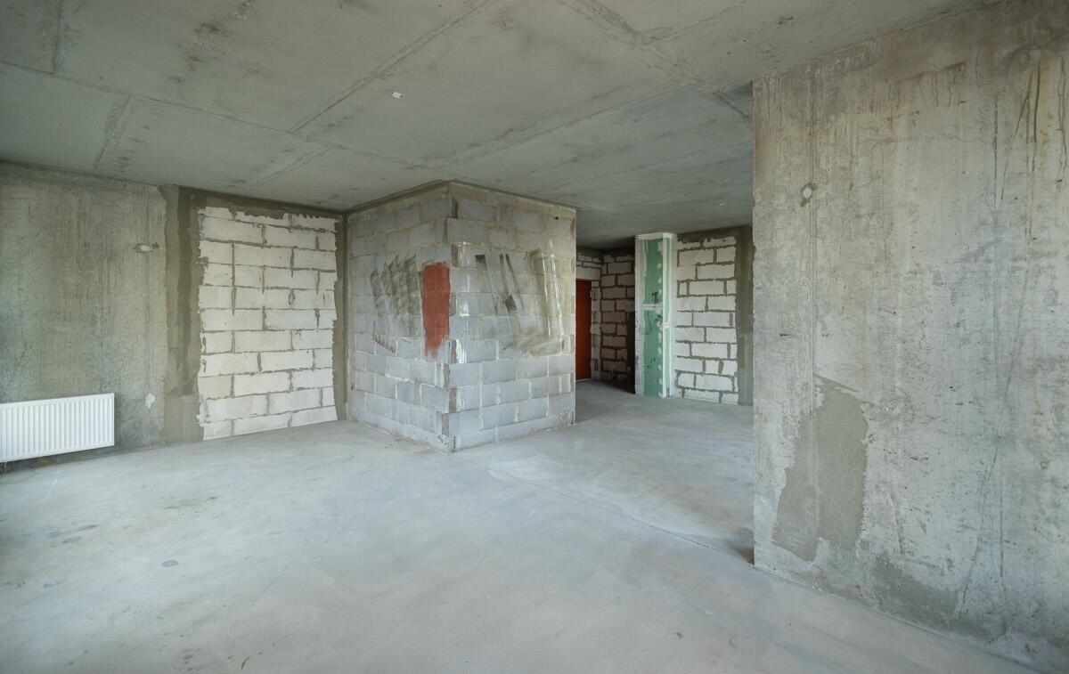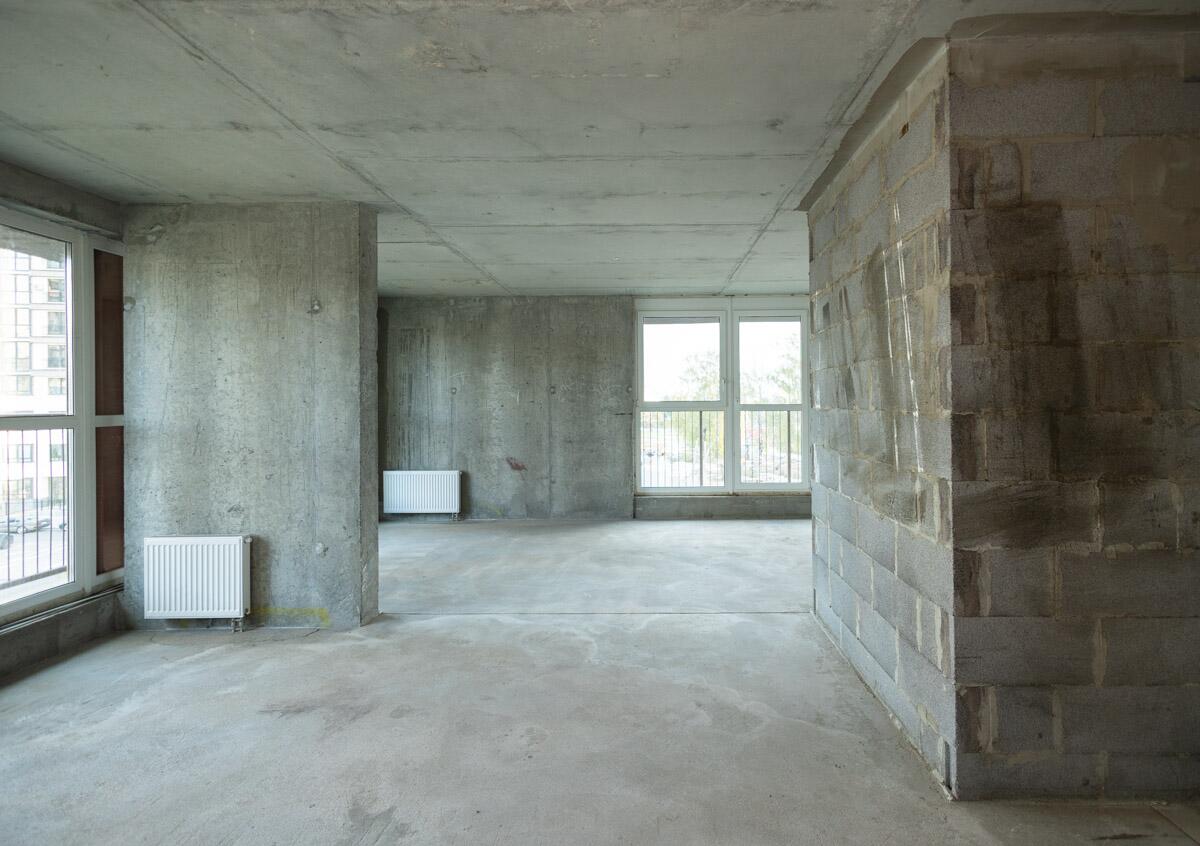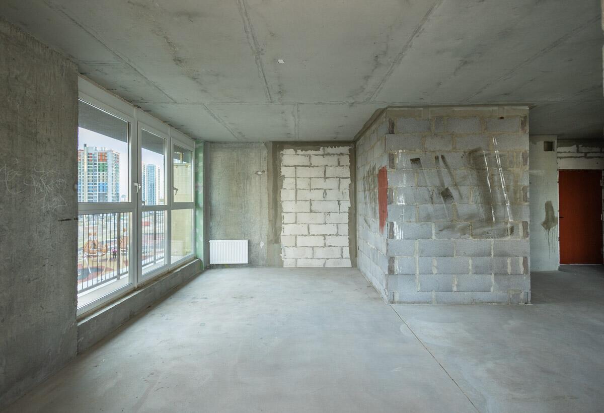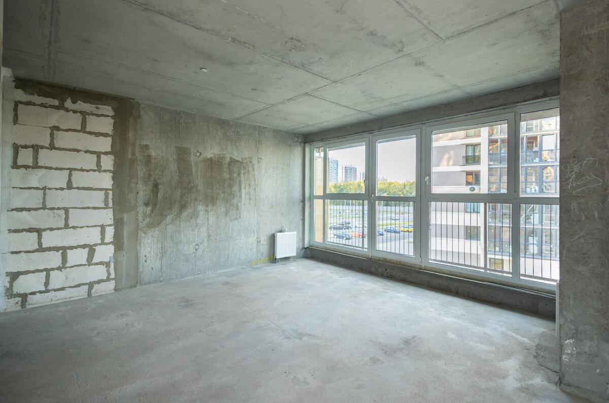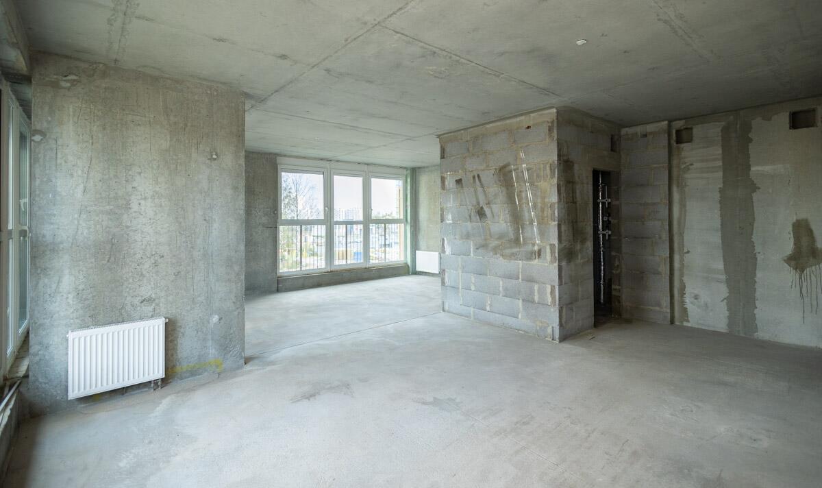 Свободная планировка, без отделки, только выставлены перегородки в с/у, все окна панорамные.