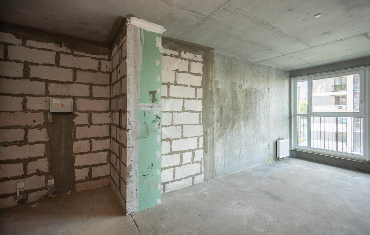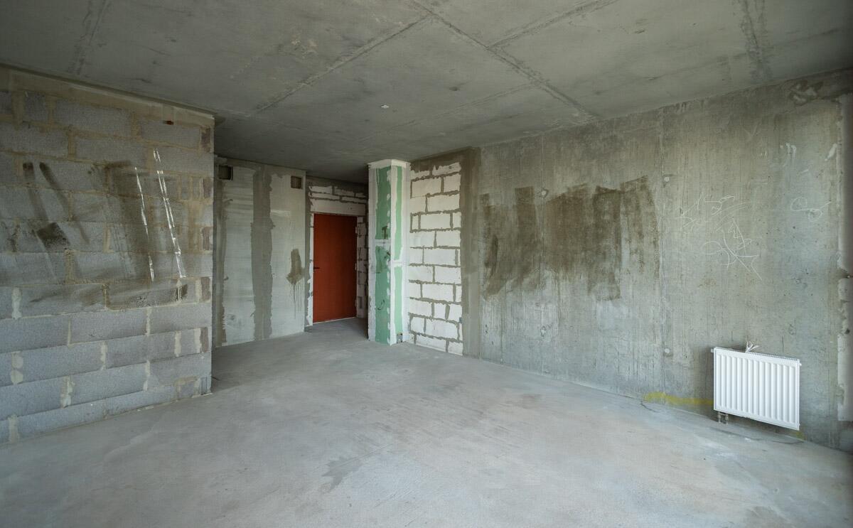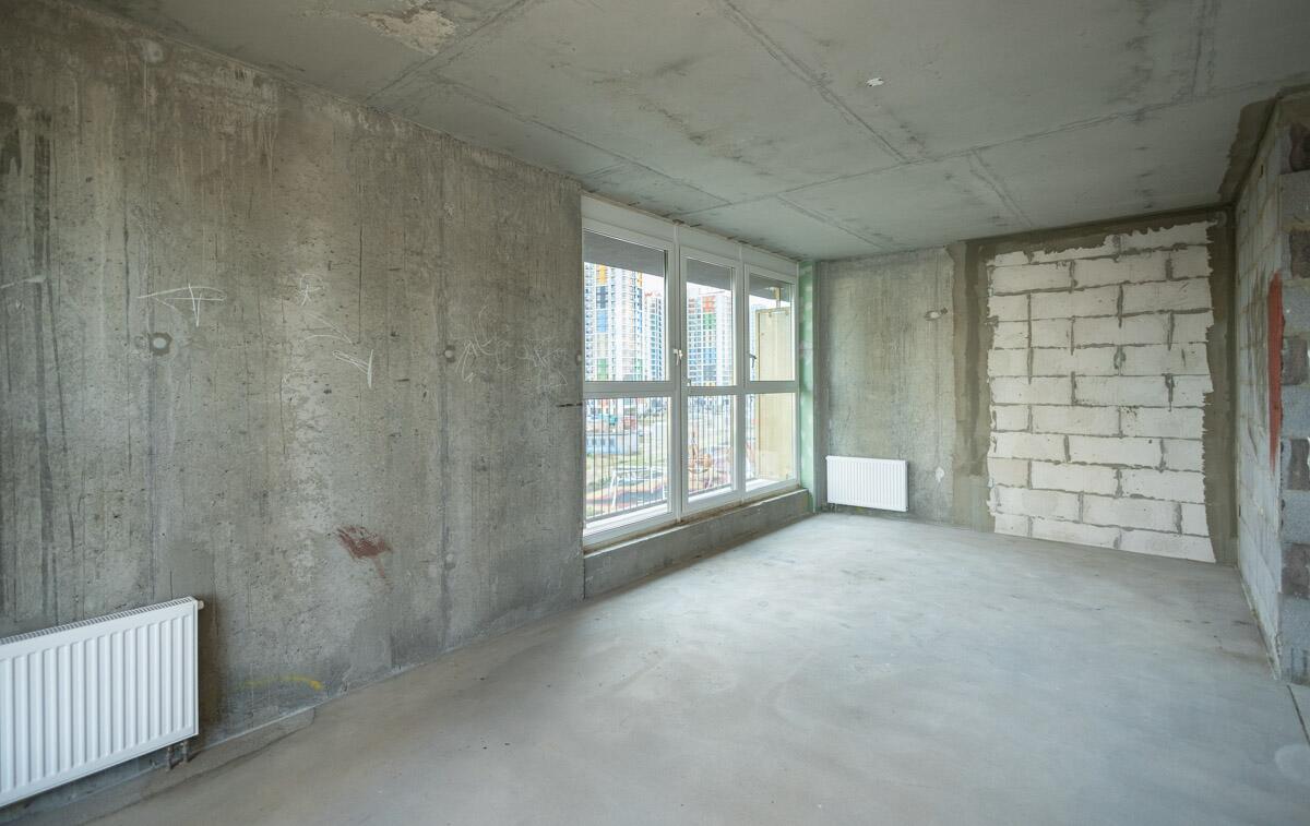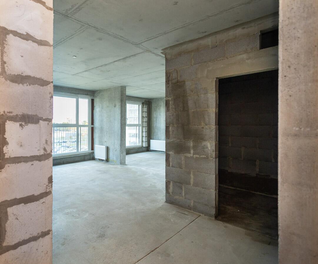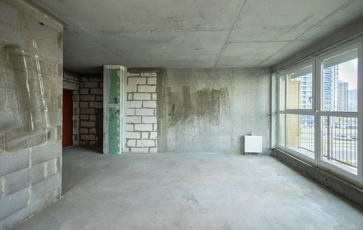 Свободная планировка, без отделки, только выставлены перегородки в с/у, все окна панорамные.