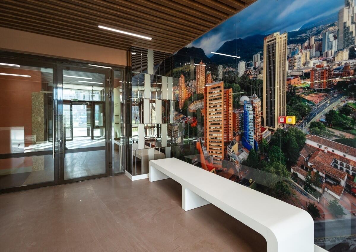 Три бесшумных скоростных лифта, один из которых панорамный.