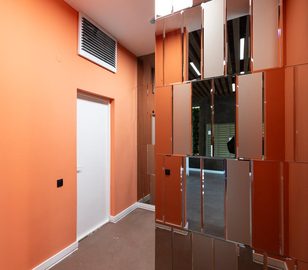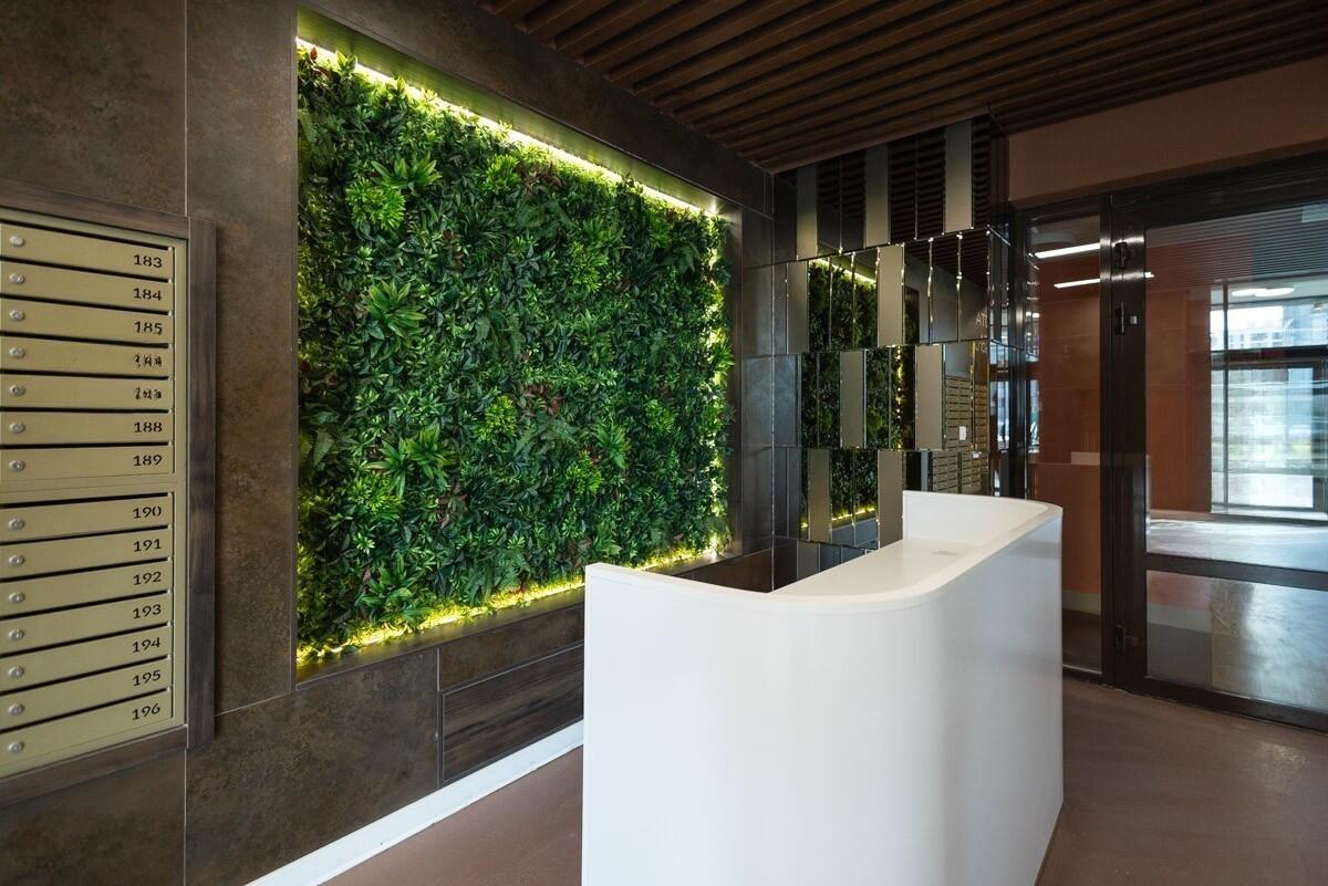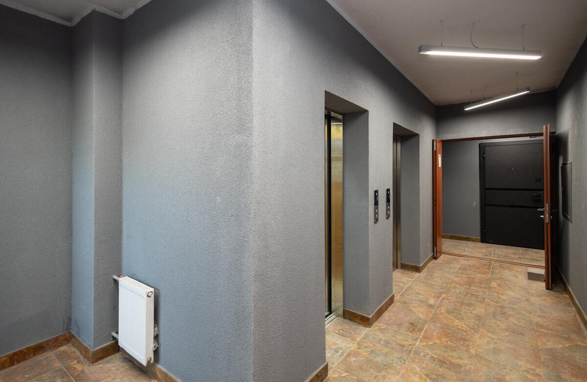 Дизайнерское лобби, место для консьержа, зона отдыха, туалет с пеленальным столиком и местом для мытья лап домашних питомцев. Есть отдельное помещение для хранения велосипедов и увеличенный тамбур, в котором можно хранить детские коляски.