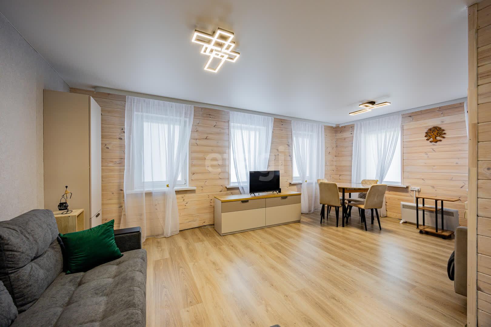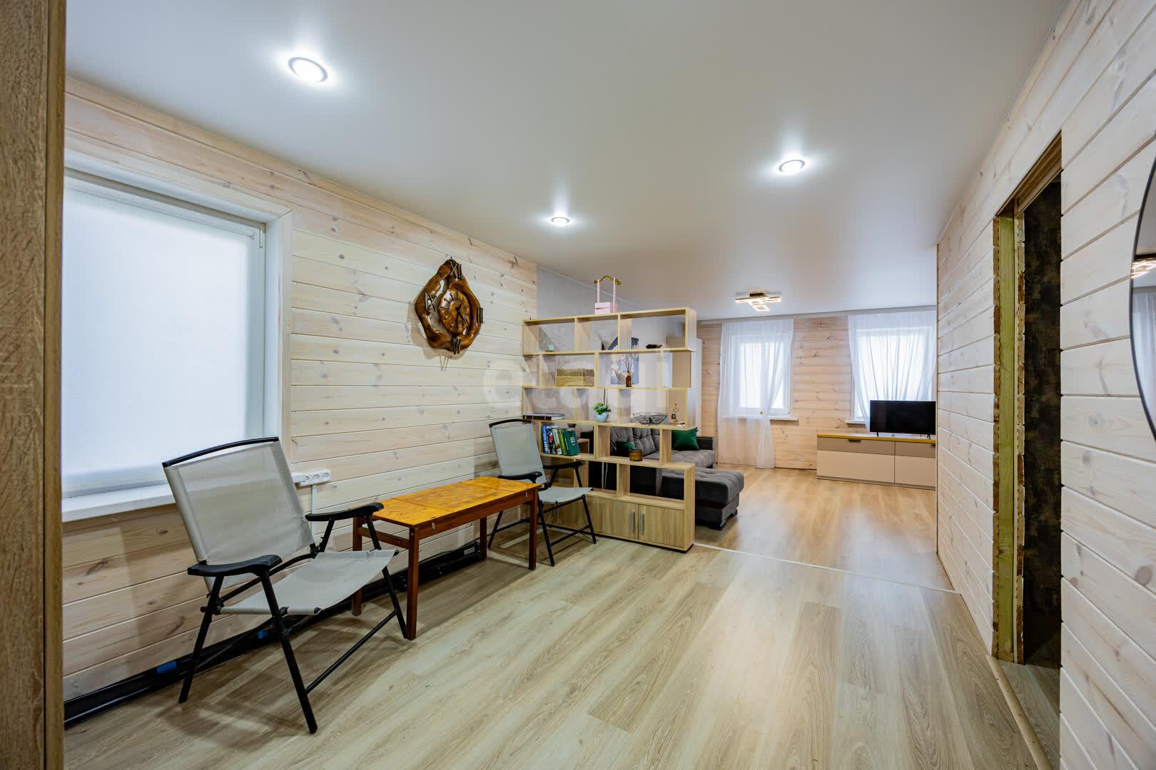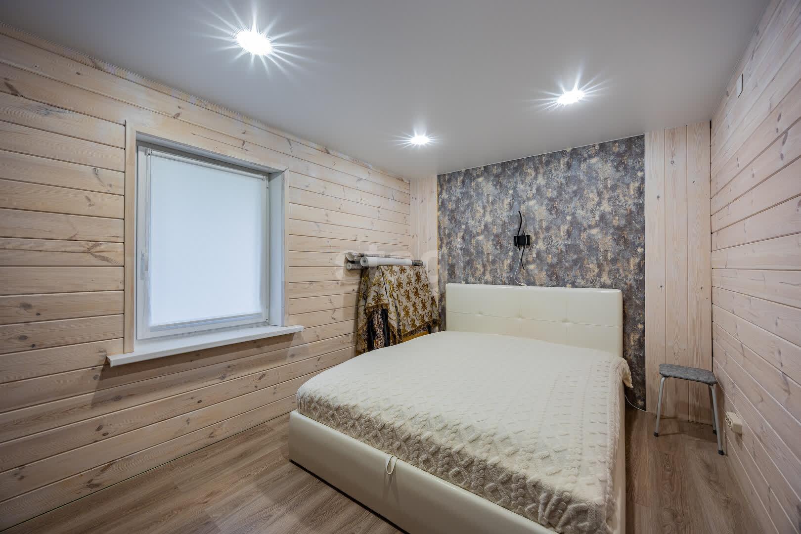 Стены в гостиной и спальне обшиты и обработаны экологически чистым белым маслом. Установлены натяжные потолки, что придает дому современный и ухоженный вид.