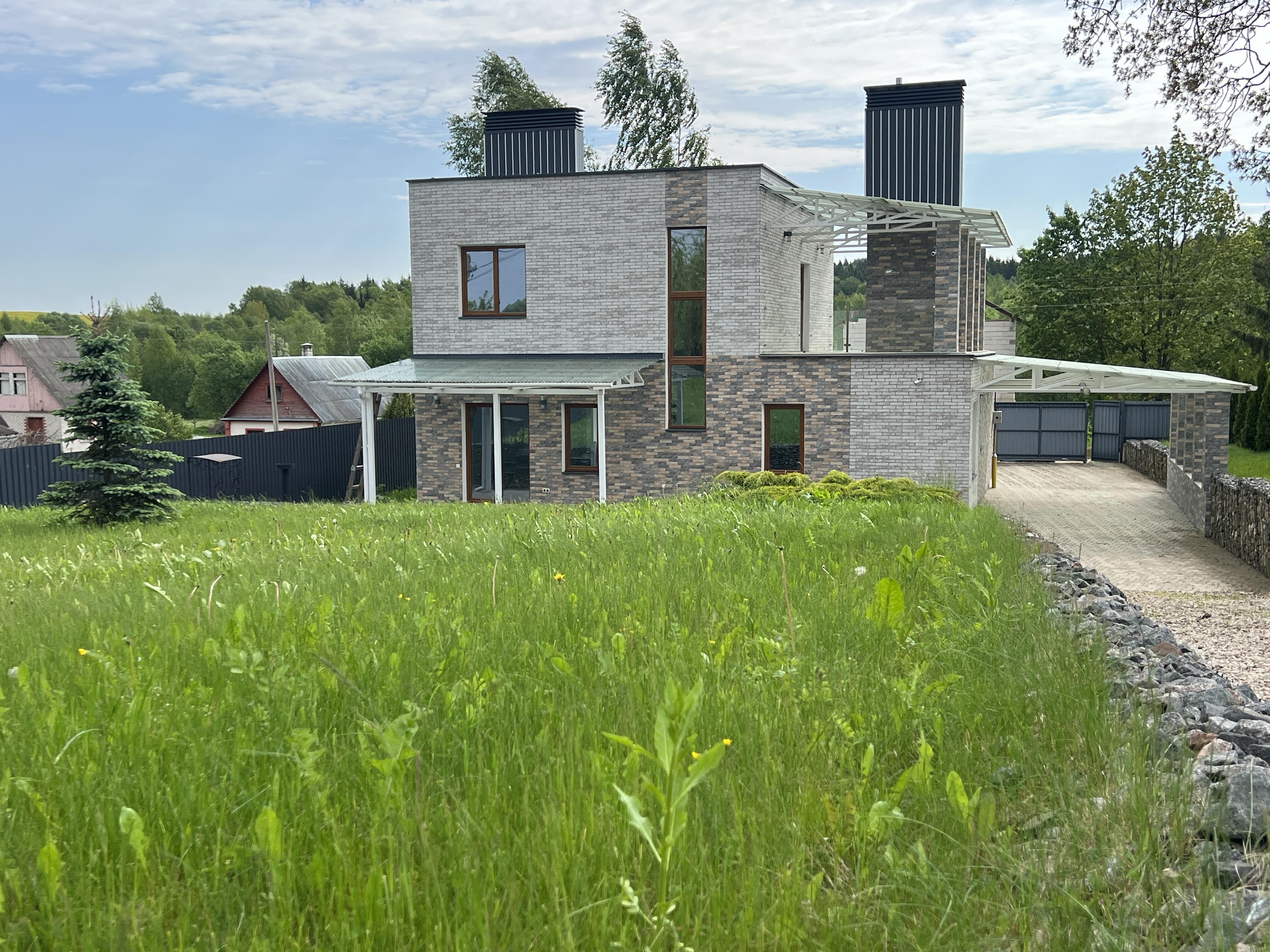 Интересное дизайнерское решение внешнего фасада. Отопление на газу Vaillant. Система видеонаблюдения. Установлена вентиляция с рекуперацией тепла. Стеклопакет 2-камерный с эффектом затемнения. Внутренняя отделка - декоративная штукатурка, обои, натяжные потолки, керамическая плитка. В доме 4 спальных комнаты, большая гостиная, 2 санузла и 2 просторные террасы. Удобная планировка с минимальным количеством коридоров. 2 выхода. Дом теплый и энергоэффективный. На участке новая баня с небольшим бассейном, шикарный мангал. Участок 15 соток огорожен и полностью облагорожен. Небольшая деревня, вокруг леса и поля. Место идеально подойдет для любителей тишины и природы. Магазин в 600 м в д. Путники. Дом в 20 минутах от города в современном стиле с отличной планировкой ждет новых владельцев!