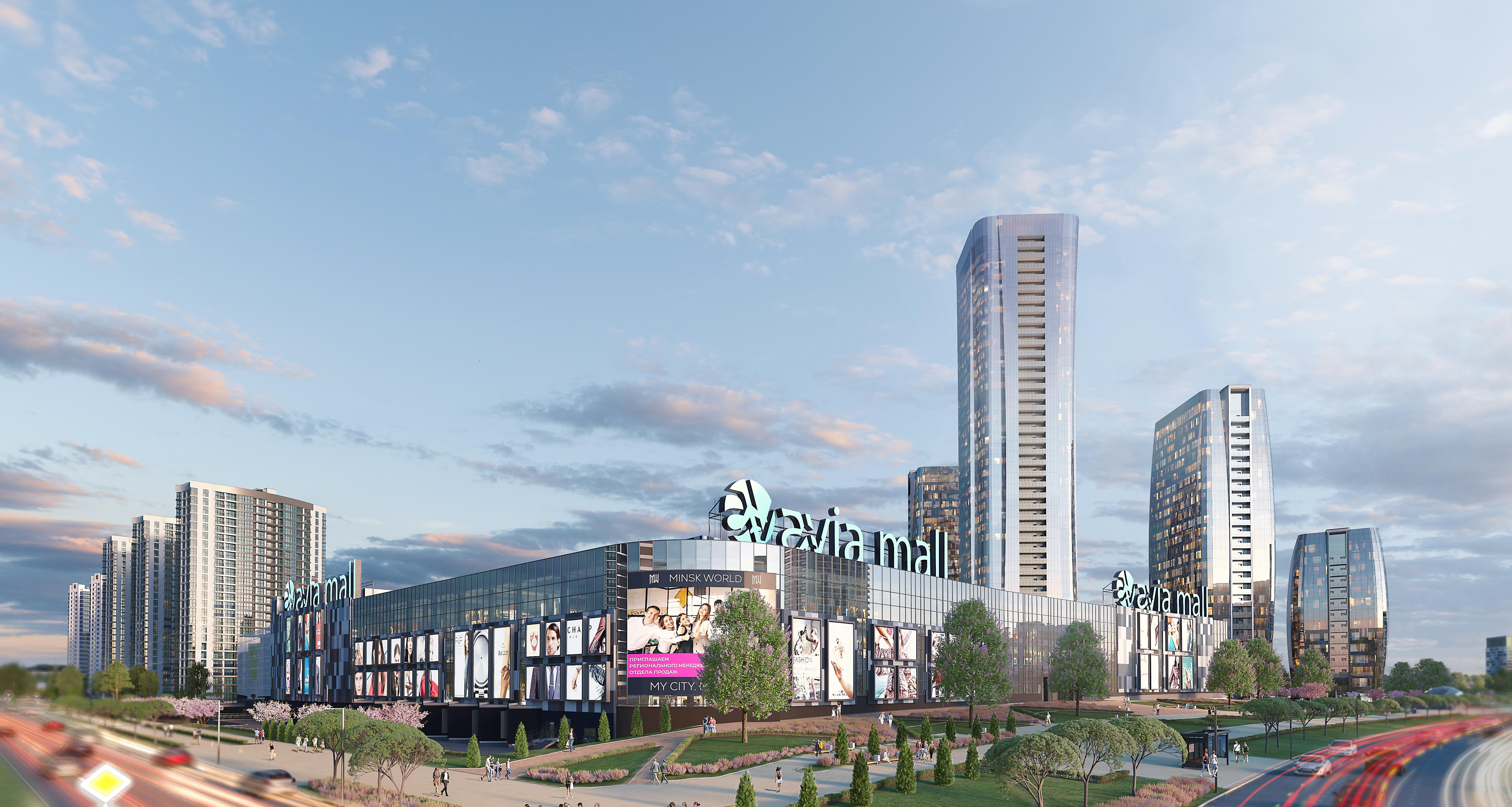 В Minsk World возводится Международный финансовый центр, символ деловой энергии современной Беларуси, а также крупнейший в стране торгово-развлекательный комплекс «Avia Mall».
