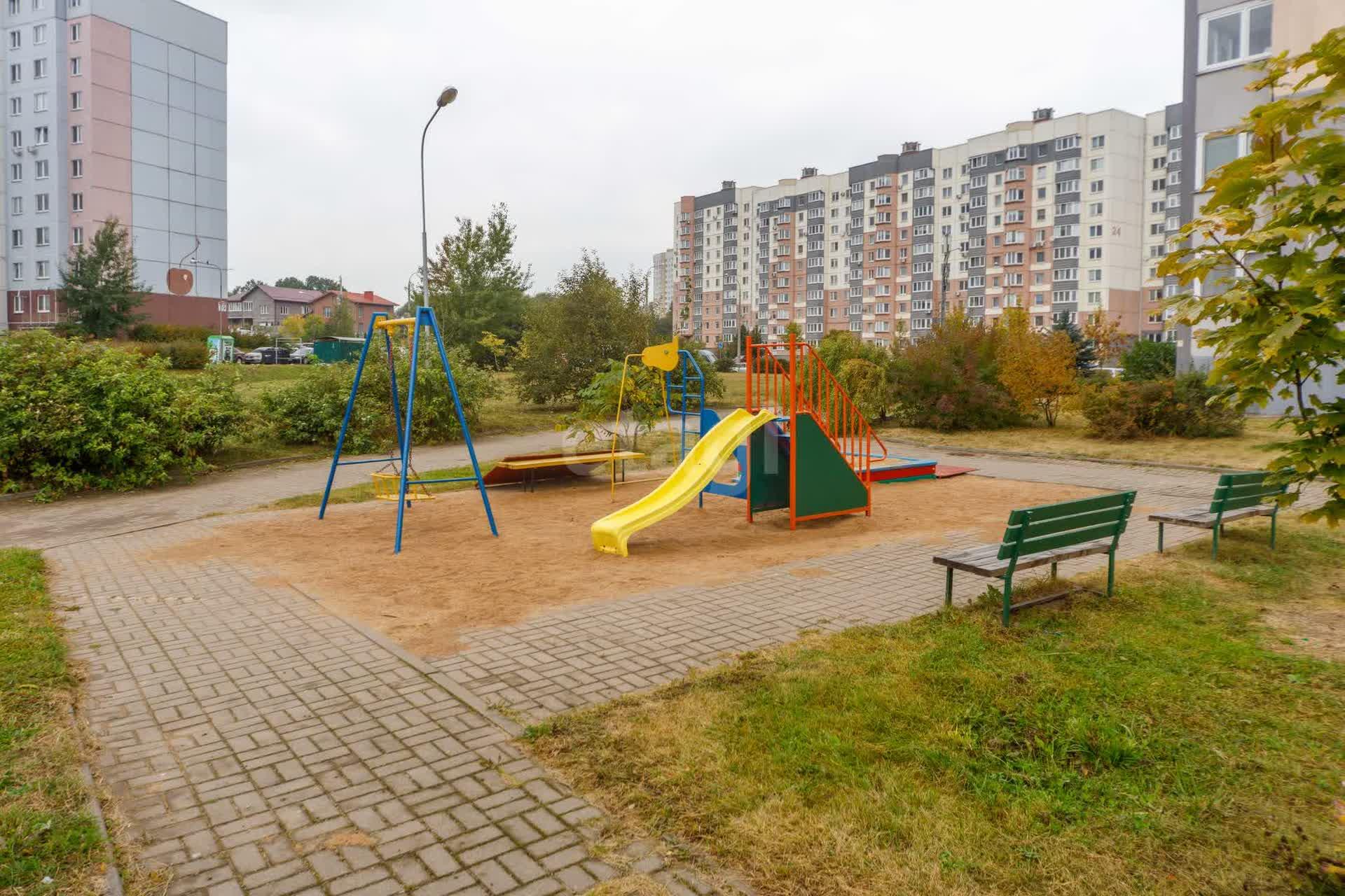 Развитая инфраструктура. В пешей доступности от дома расположены: магазин «Евроопт», мелкие продуктовые магазины, зоомагазины, почта, салоны красоты, кофейни, аптеки, фитнес-клуб, парикмахерские, детский сад, современная школа, в которой есть бассейн и теннисные корты.