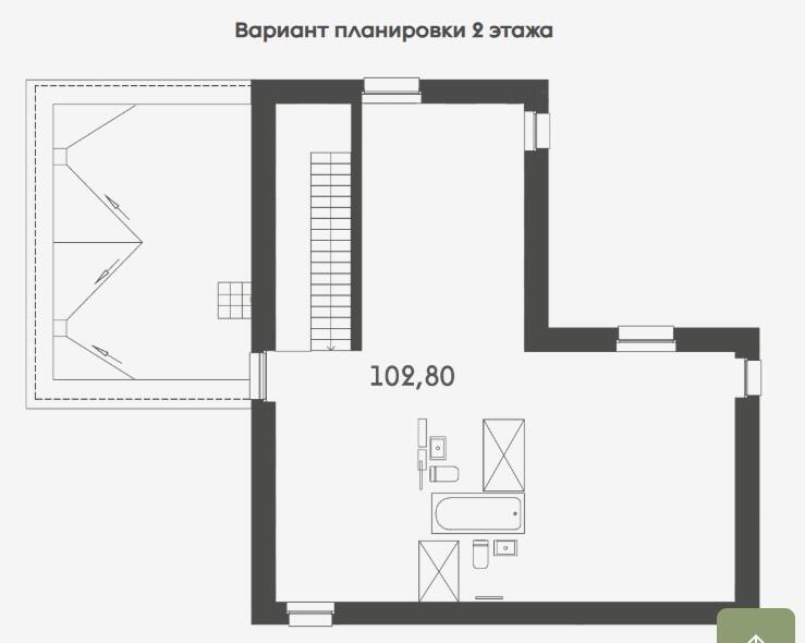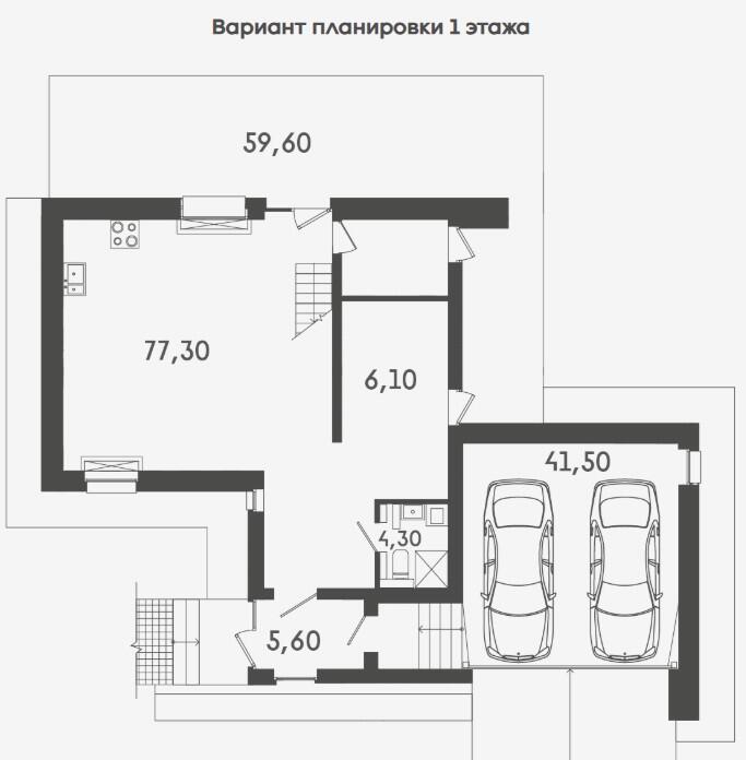 Планировка дома продумана с акцентом на максимум свободного пространства. На первом уровне предусмотрены технические помещения и санитарный узел, а остальная зона отдана под гостиную-кухню с выходом на террасу. На втором уровне пространство свободное, что позволяет адаптировать его под индивидуальные задачи — спальни, кабинеты, зоны отдыха или творчества.