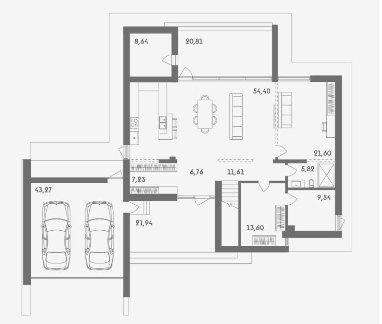гибкая планировка с возможностью добавления модулей — можно организовать домашний кинотеатр, бильярдную или спортивную зону;