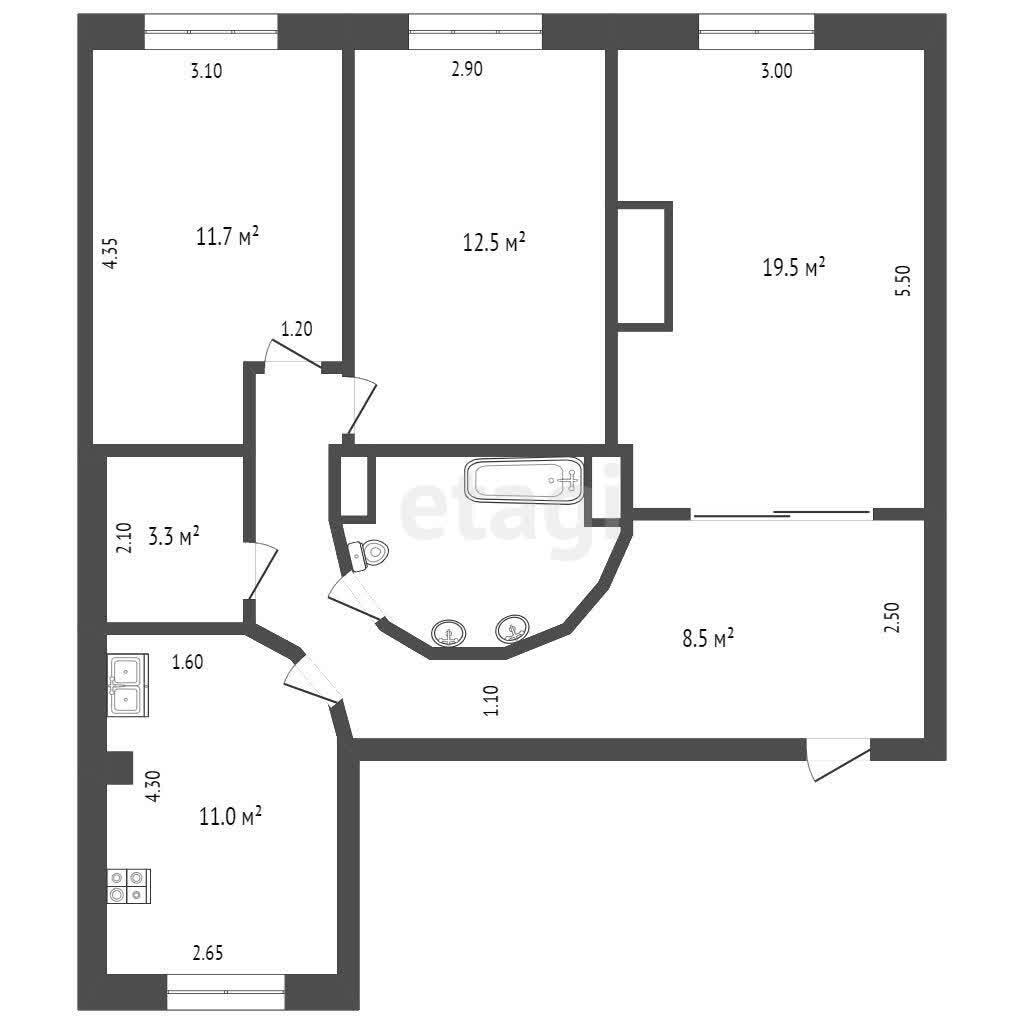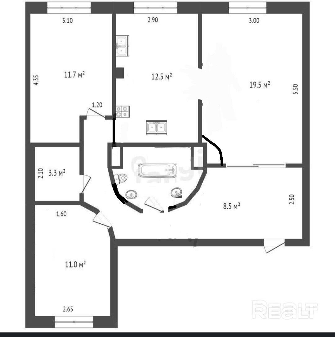 Планировка с просторной гостевой и кухней. И двумя отдельными уютными комнатами.
