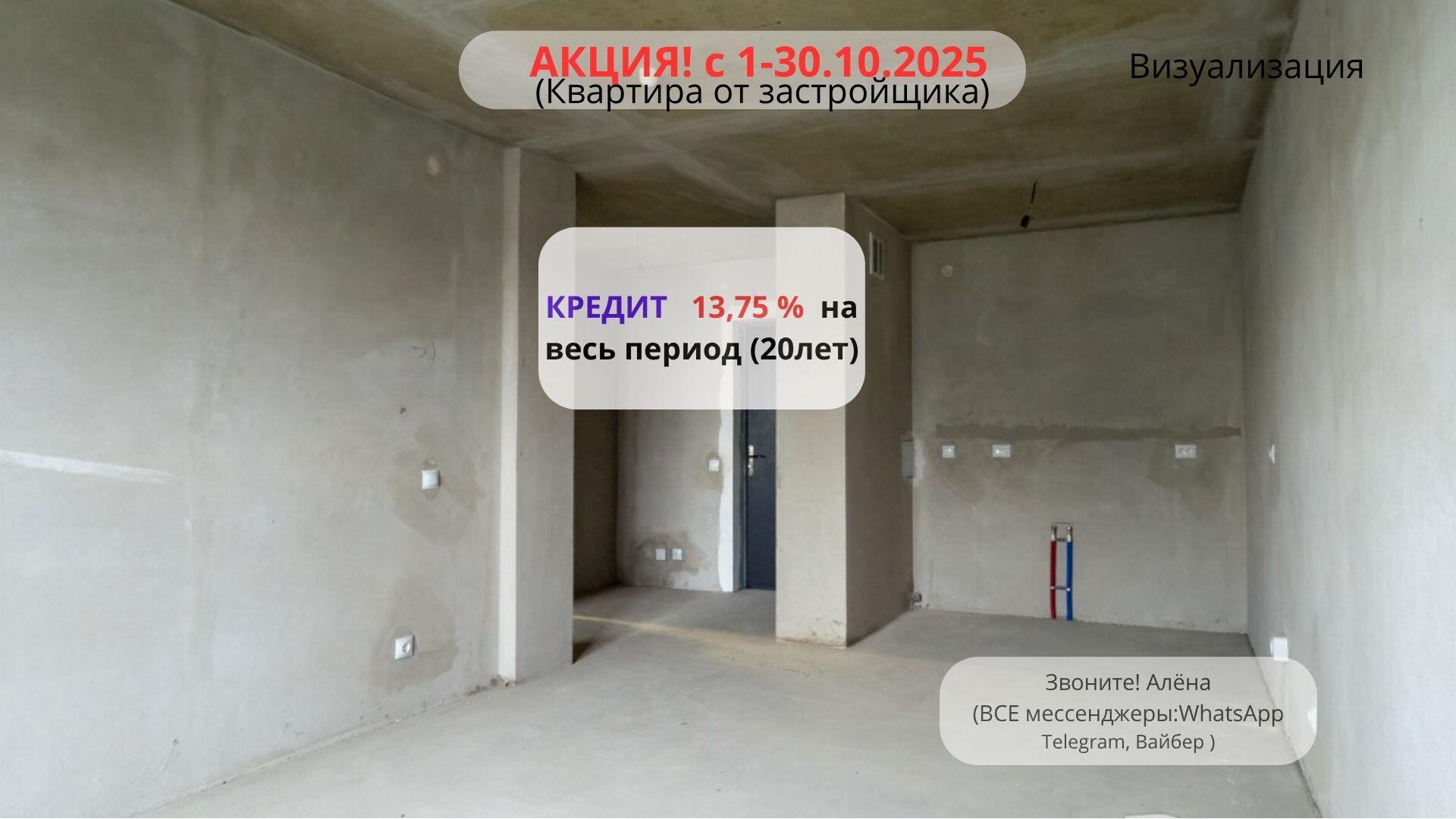 Квартира от застройщика + личная кладовка (КРЕДИТ!) Ремонт "под чистовую" отделку. Звоните, Алёна.