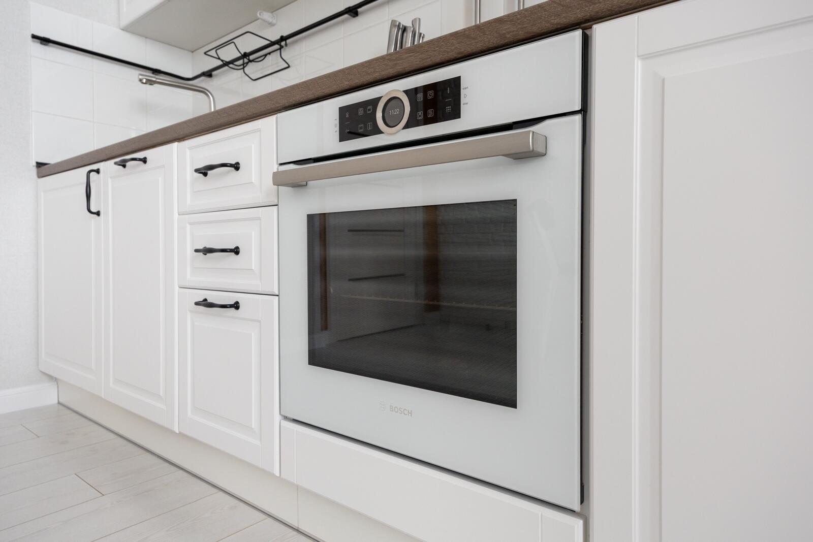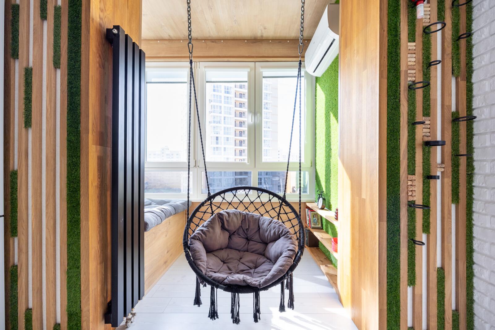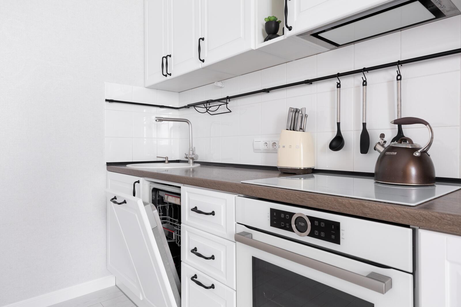 Кухня - акцент квартиры. Здесь всё продумано до деталей: стильная мебель, качественная встроенная техника Bosch, эффектное освещение и даже подвесные качели - изюминка интерьера, создающая атмосферу лёгкости и отдыха.