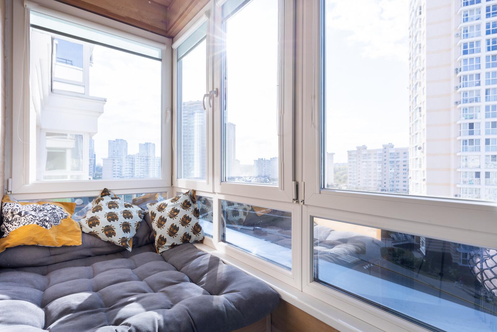 Здесь оборудована зона отдыха с мягким ложем, которая при необходимости трансформируется в полноценное спальное место. Идеальное пространство, чтобы встретить рассвет или устроить вечер с книгой и видом на город.