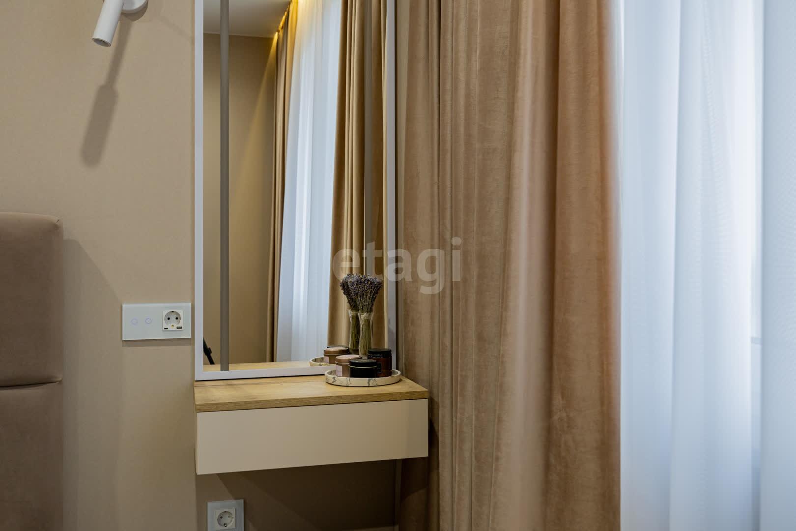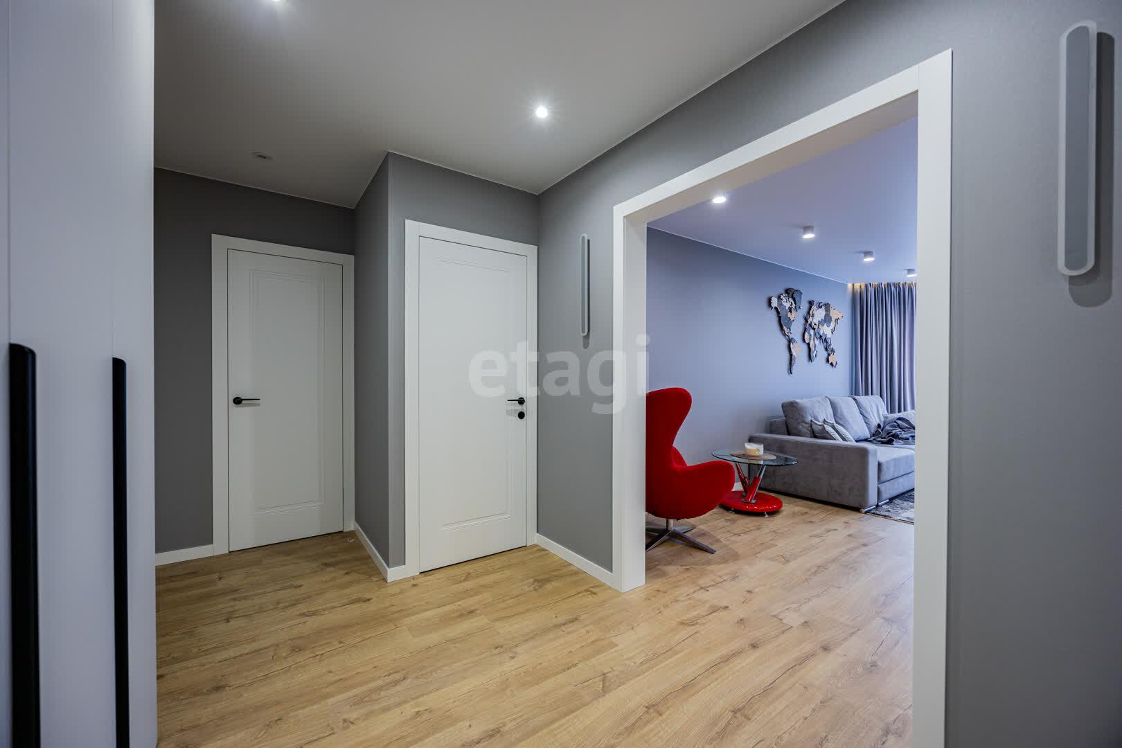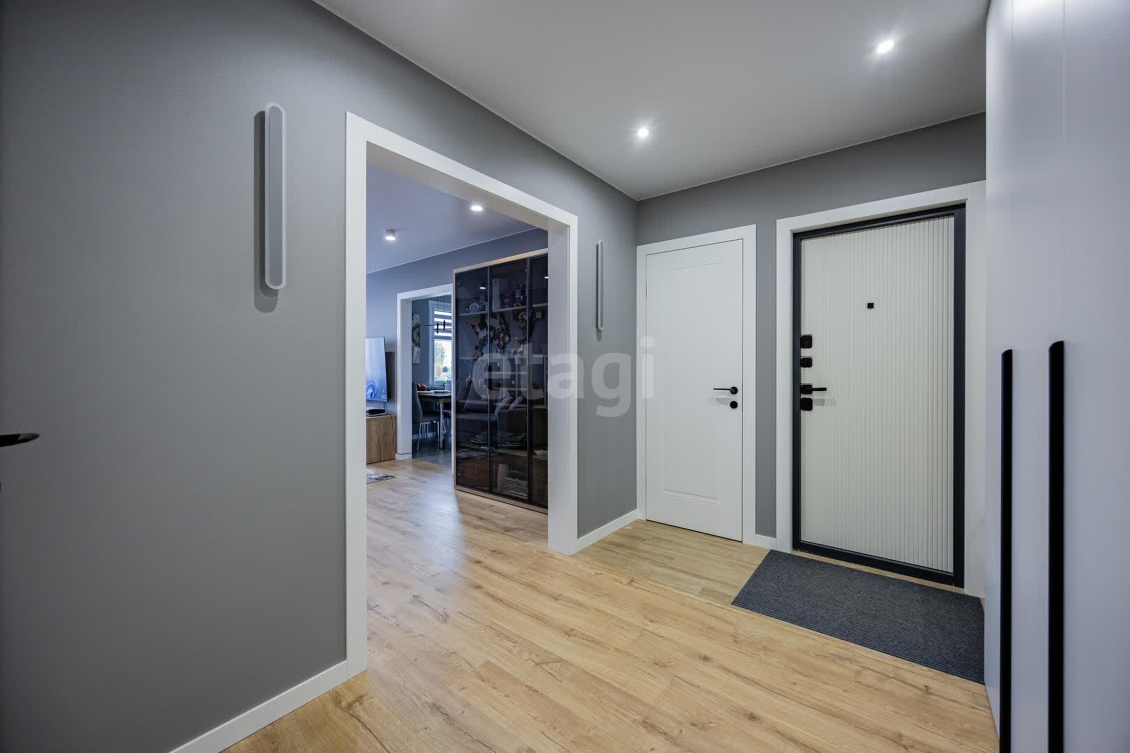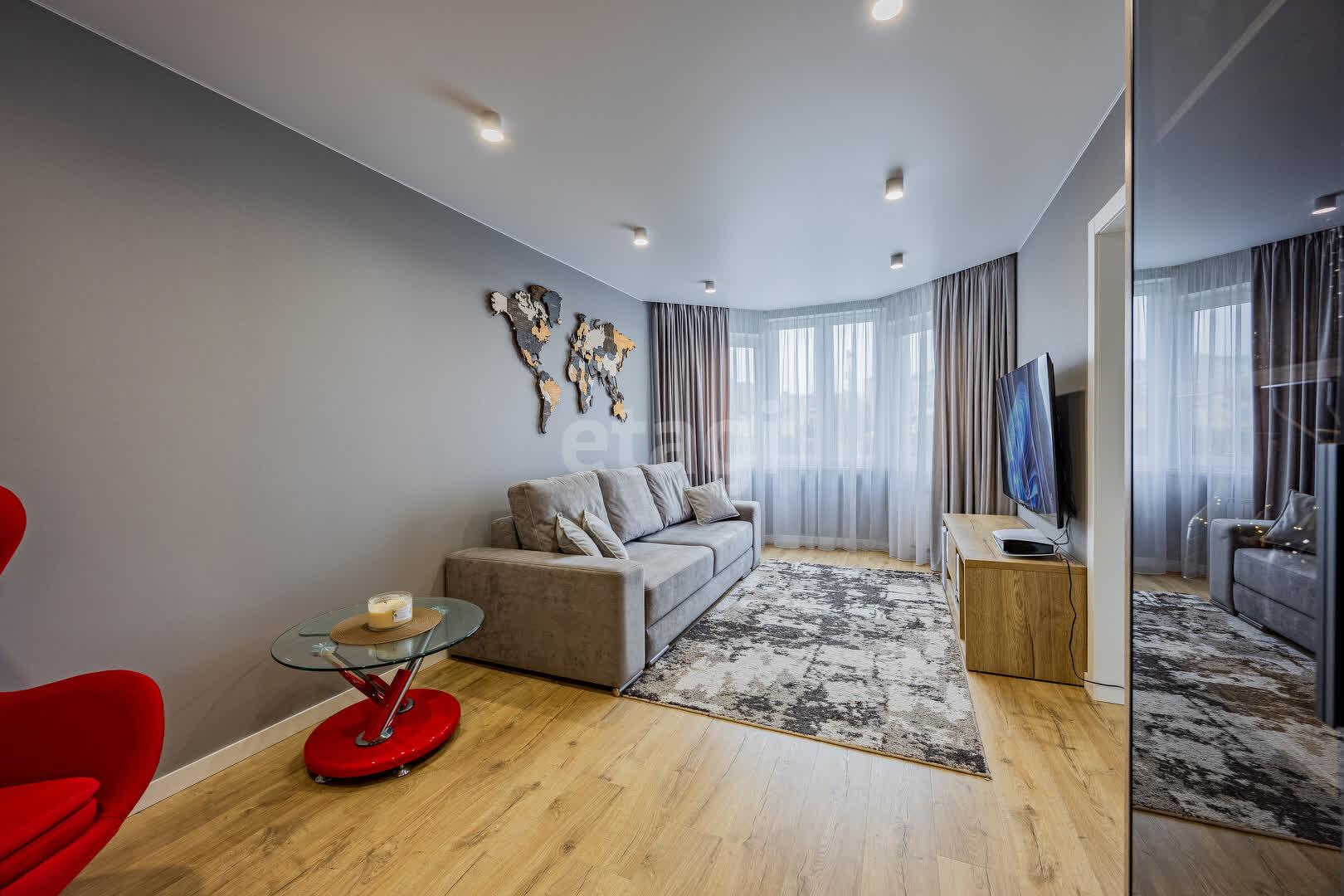 В квартире выполнен качественный ремонт в едином стиле и цветовой гамме из современных дорогостоящих материалов: напольное покрытие ламинат, стены оклеены обоями, потолки натяжные, межкомнатные двери МДФ крашенный на магнитных замках, окна ПВХ, входная дверь металлическая. Тёплый пол в ванной и кухне. В каждой комнате реализованы разные сценарии освещения, установлены сенсорные выключатели и розетки с USB и Type-C разъёмами.