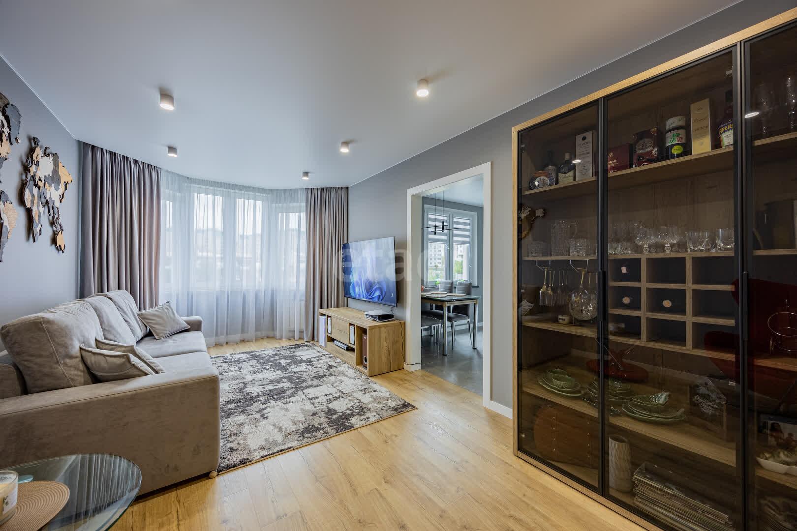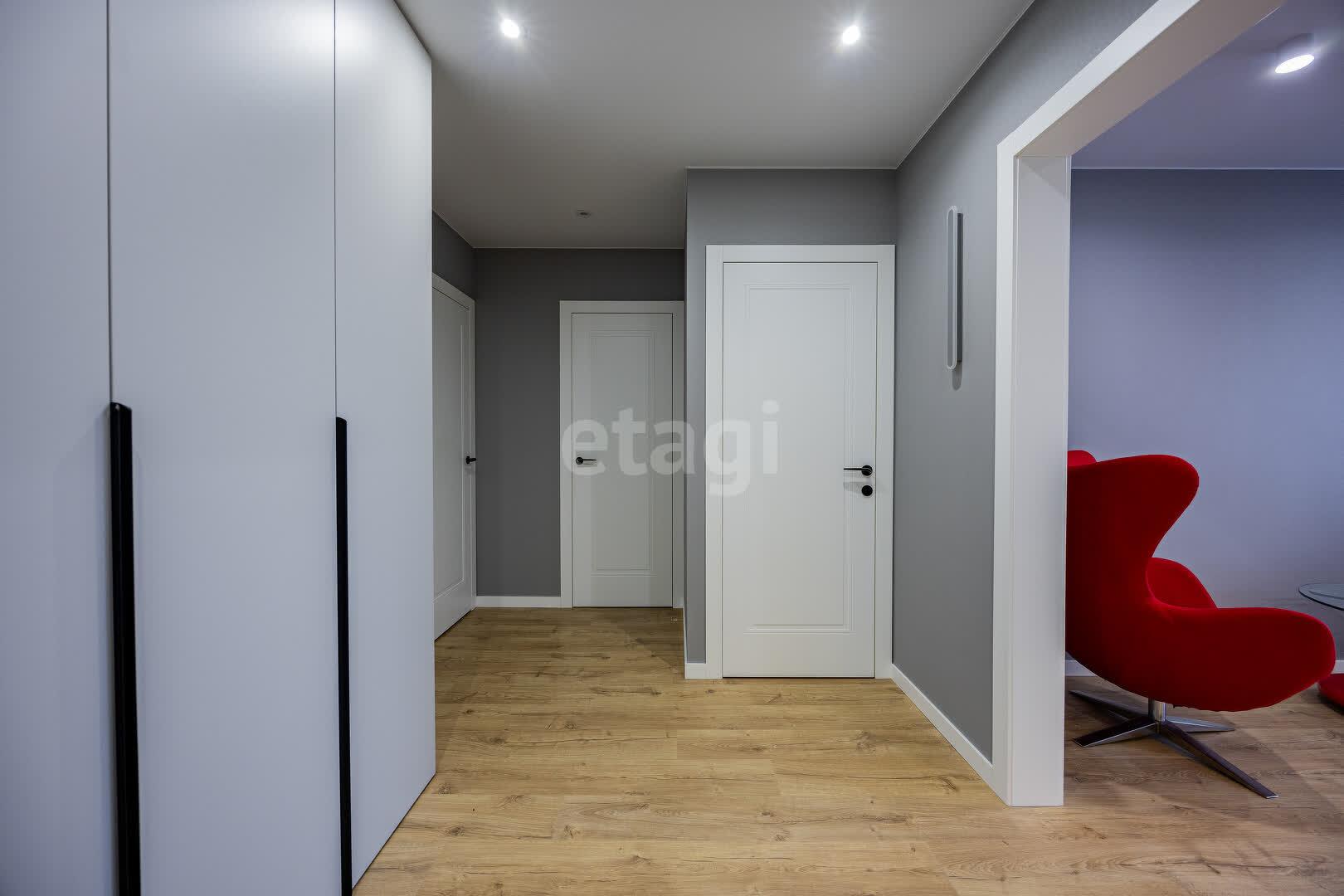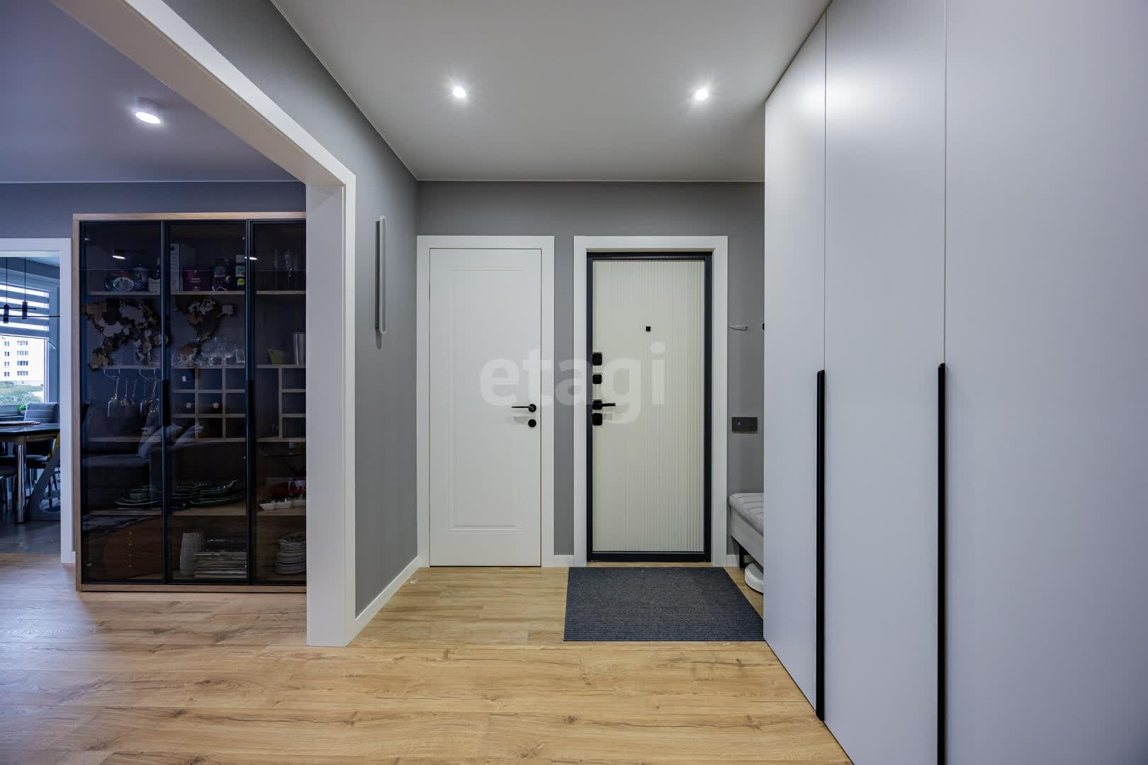В квартире выполнен качественный ремонт в едином стиле и цветовой гамме из современных дорогостоящих материалов: напольное покрытие ламинат, стены оклеены обоями, потолки натяжные, межкомнатные двери МДФ крашенный на магнитных замках, окна ПВХ, входная дверь металлическая. Тёплый пол в ванной и кухне. В каждой комнате реализованы разные сценарии освещения, установлены сенсорные выключатели и розетки с USB и Type-C разъёмами.