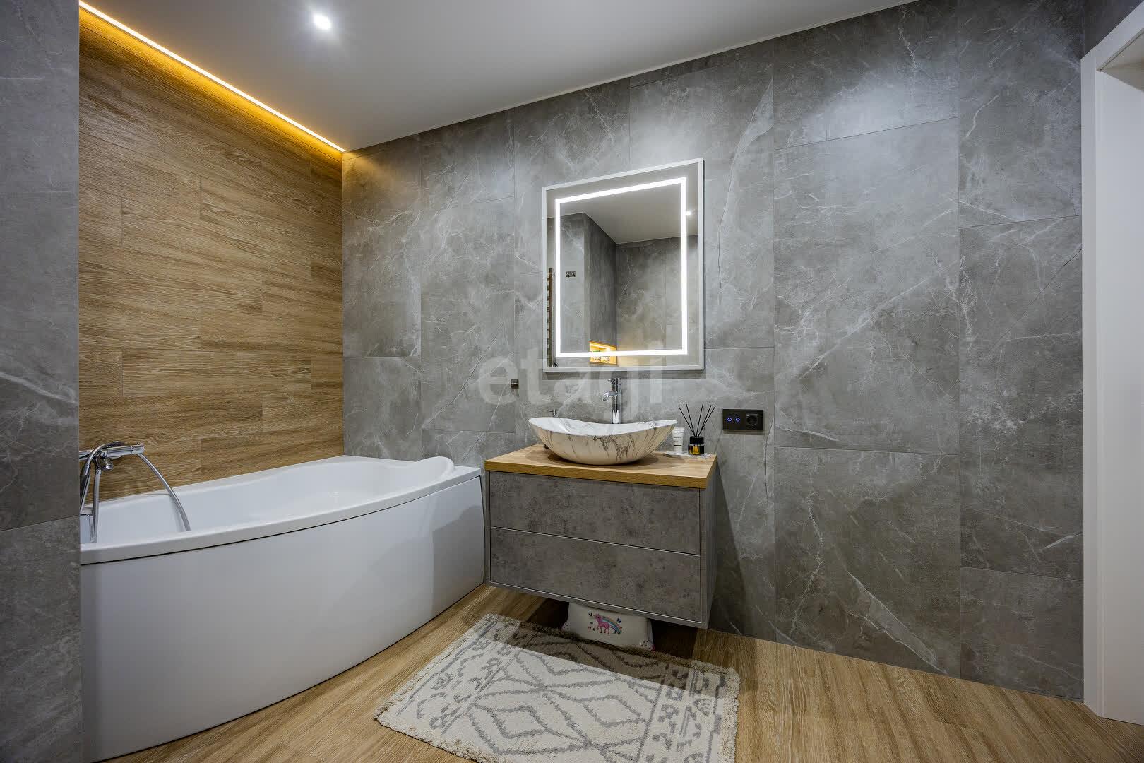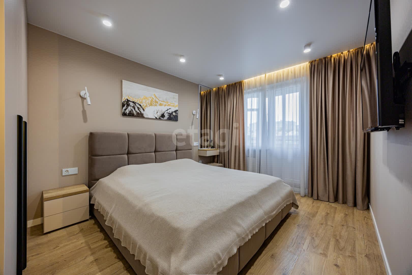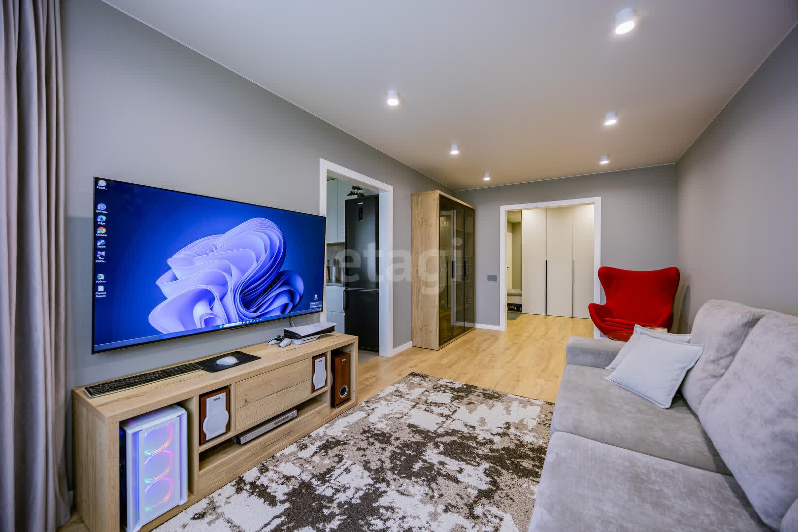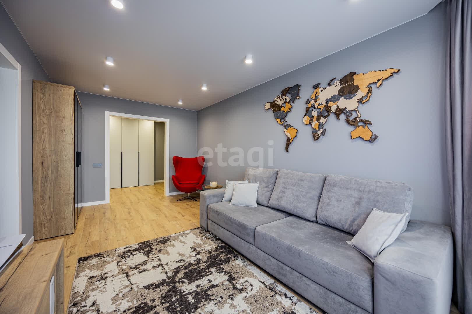 В квартире выполнен качественный ремонт в едином стиле и цветовой гамме из современных дорогостоящих материалов: напольное покрытие ламинат, стены оклеены обоями, потолки натяжные, межкомнатные двери МДФ крашенный на магнитных замках, окна ПВХ, входная дверь металлическая. Тёплый пол в ванной и кухне. В каждой комнате реализованы разные сценарии освещения, установлены сенсорные выключатели и розетки с USB и Type-C разъёмами.
