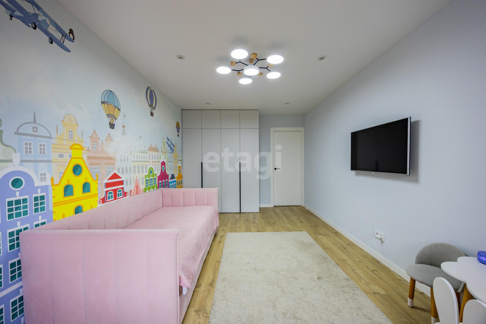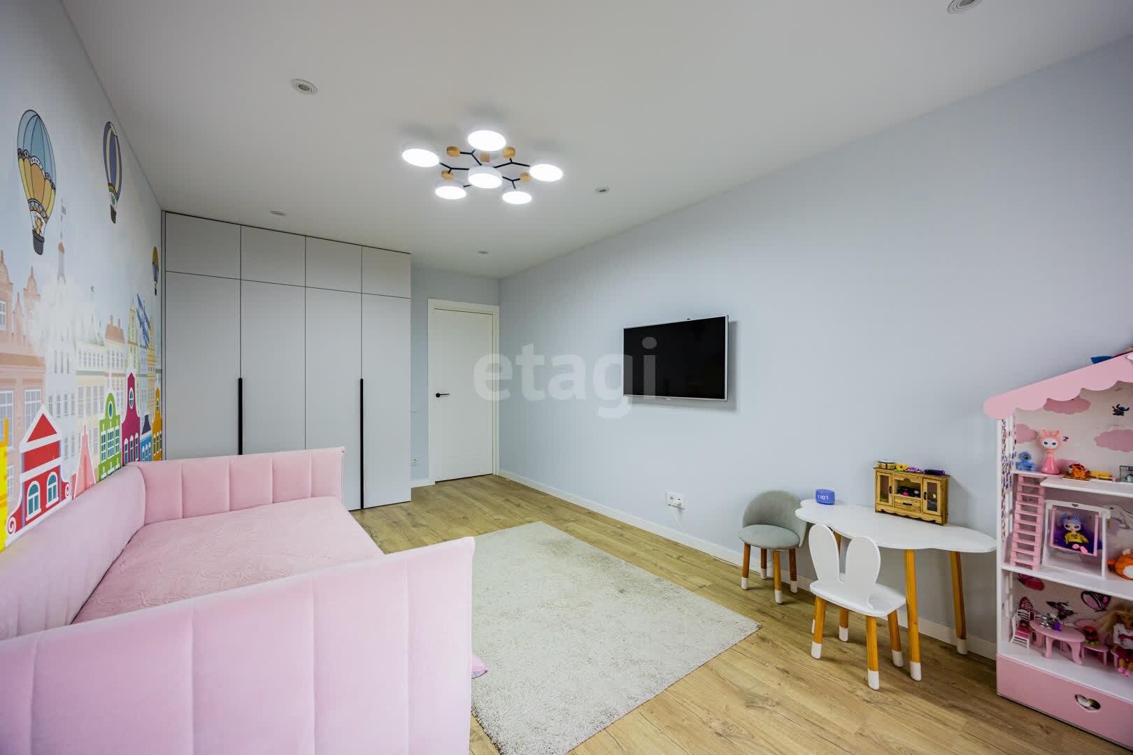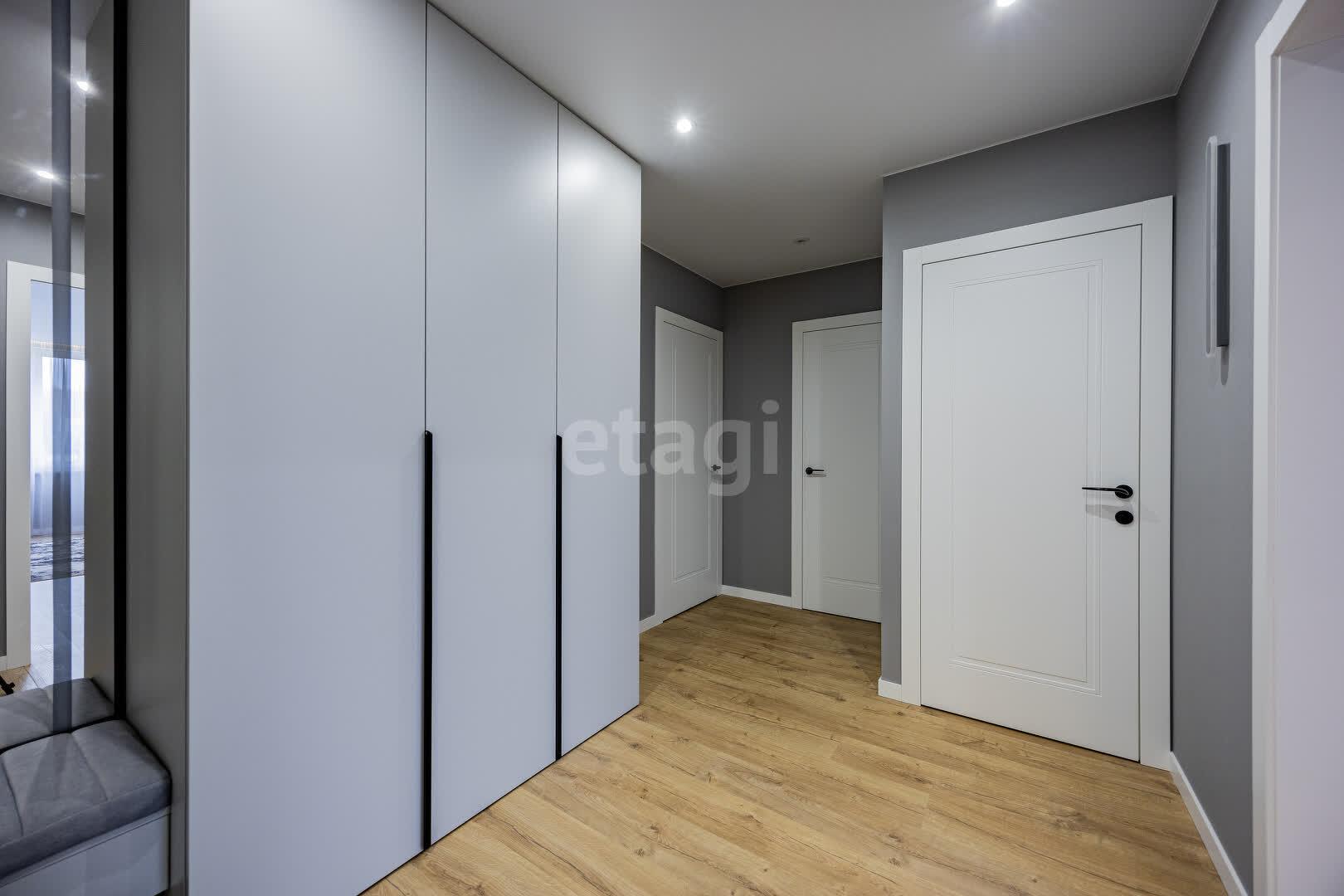 Спальня, детская и прихожая оборудованы встроенными шкафами. Кроме того, имеется вместительная гардеробная 3.0 м.кв. с системой хранения.